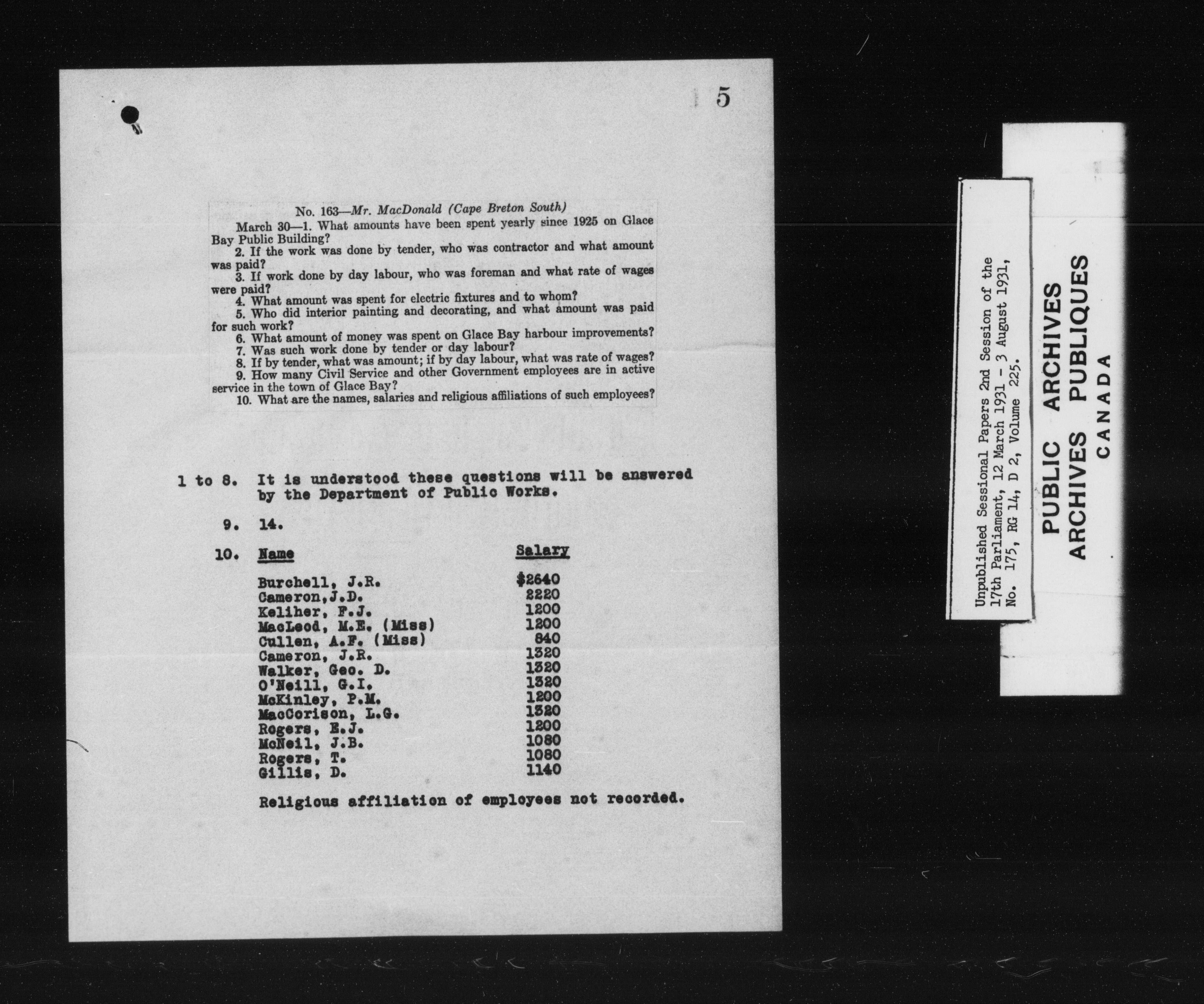 Unpublished sessional papers, 2nd session of the 17th Parliament, 12 March-3 August 1931 - 7576