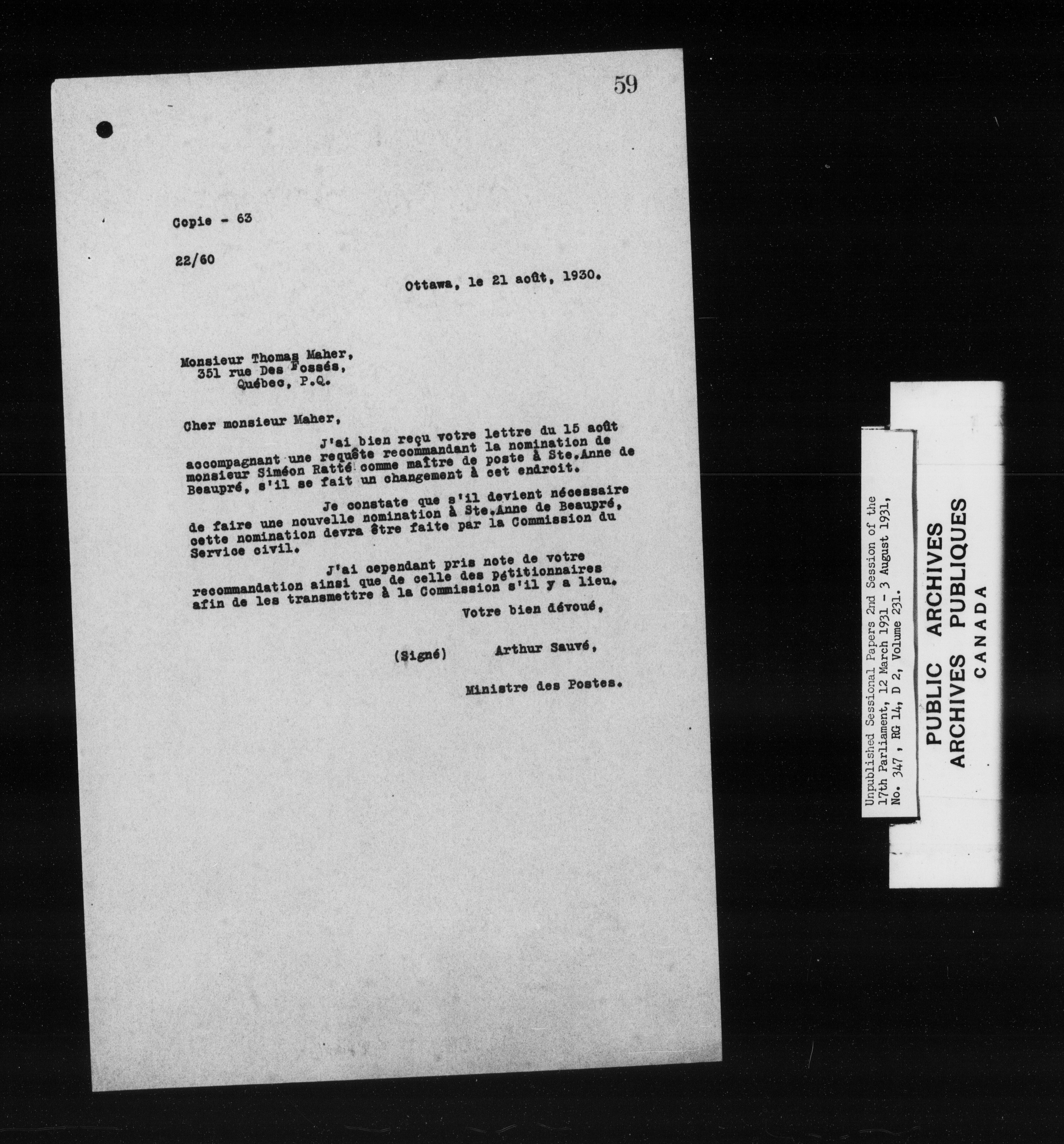 Unpublished sessional papers, 2nd session of the 17th Parliament, 12 March-3 August 1931 - 7579