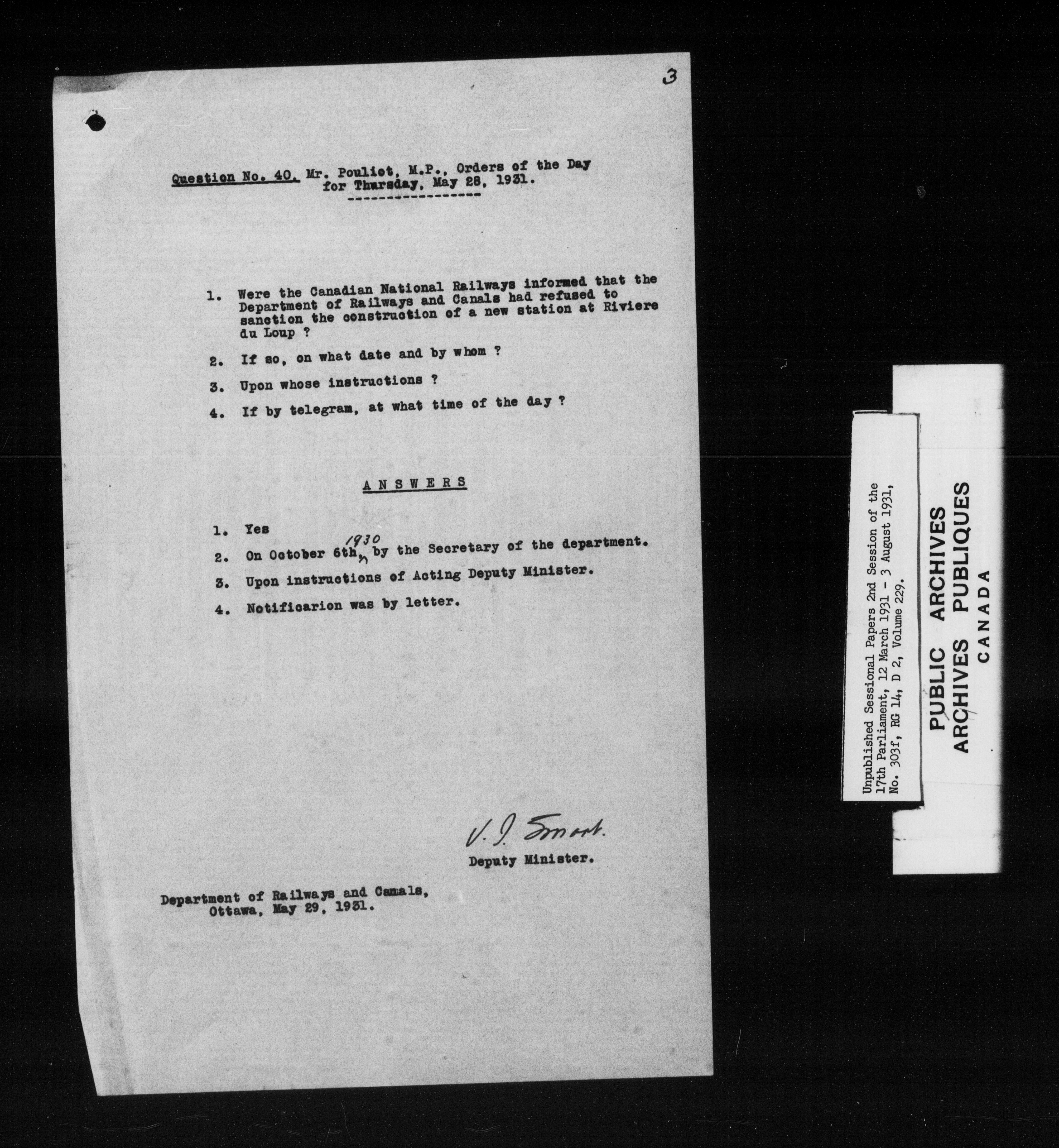 Unpublished sessional papers, 2nd session of the 17th Parliament, 12 March-3 August 1931 - 7579