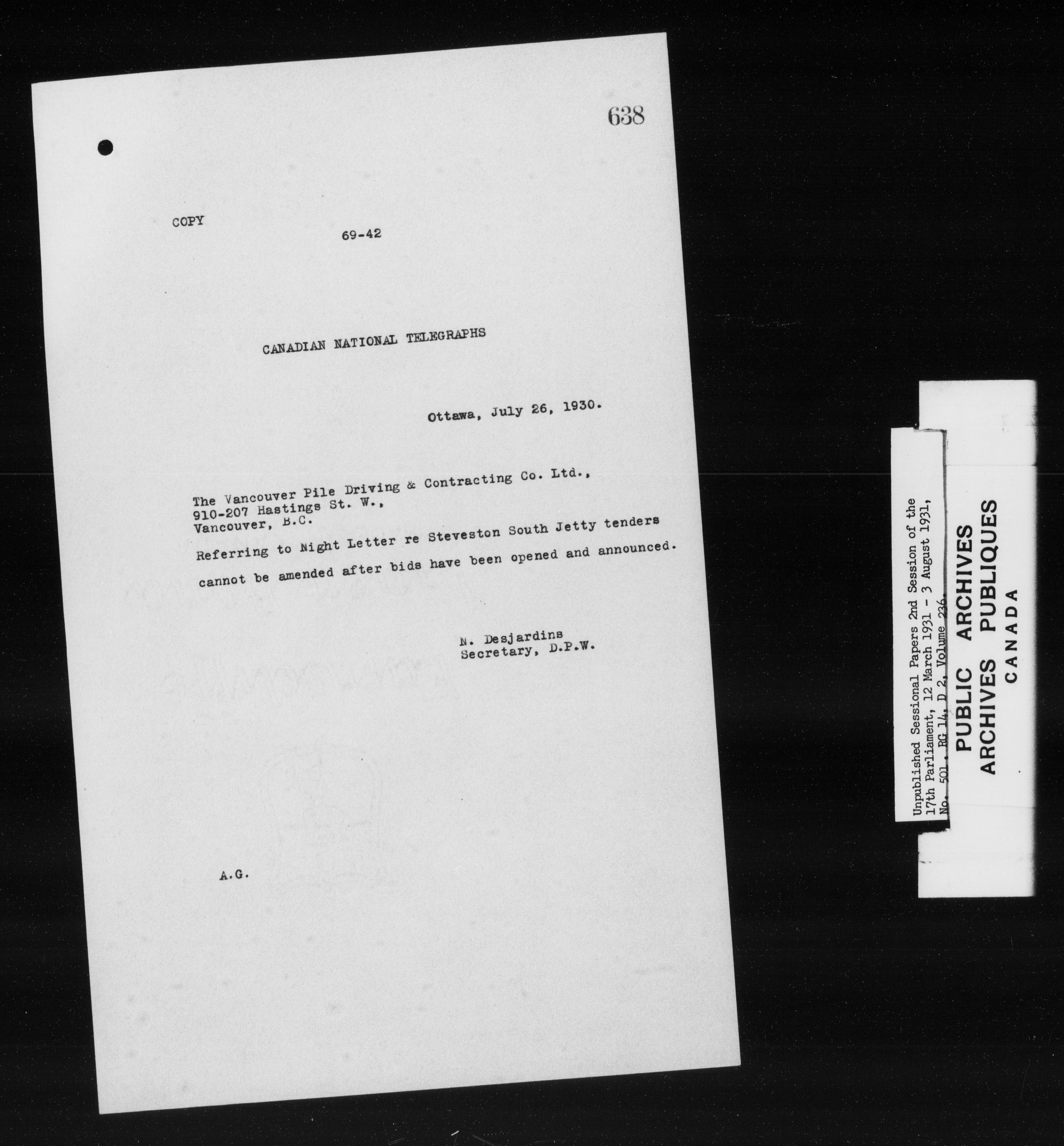 Unpublished sessional papers, 2nd session of the 17th Parliament, 12 March-3 August 1931 - 7582