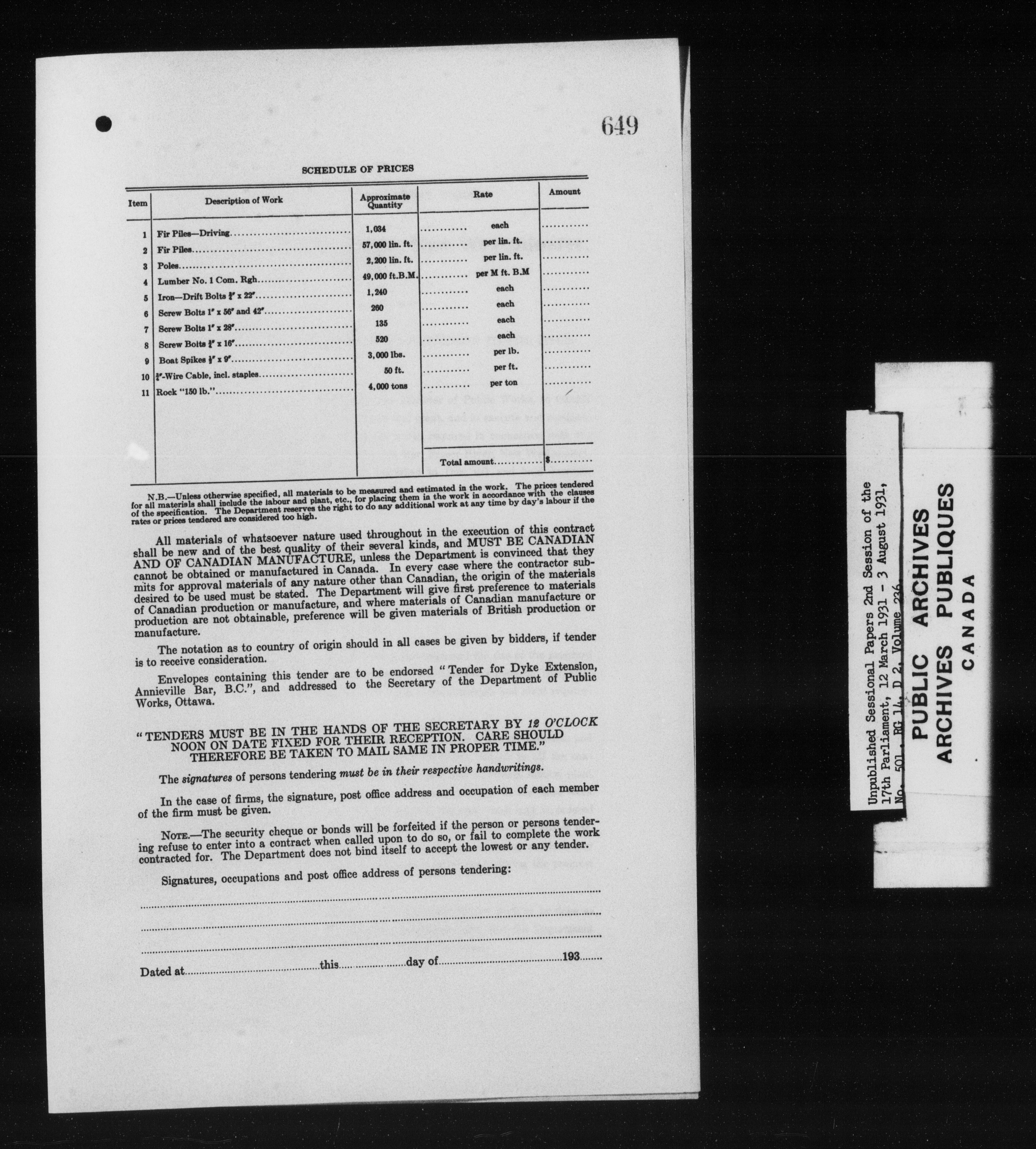 Unpublished sessional papers, 2nd session of the 17th Parliament, 12 March-3 August 1931 - 7582