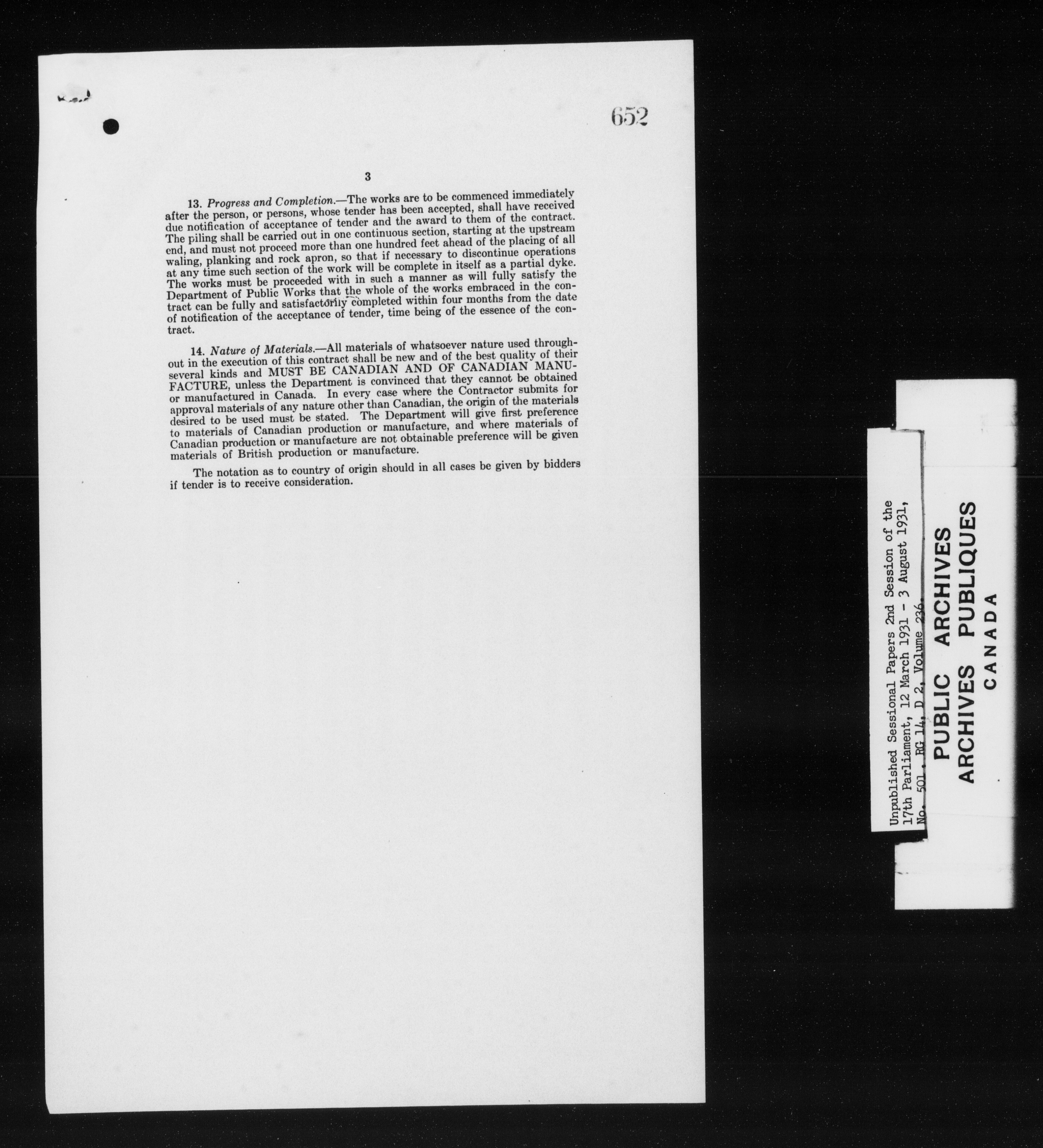 Unpublished sessional papers, 2nd session of the 17th Parliament, 12 March-3 August 1931 - 7582