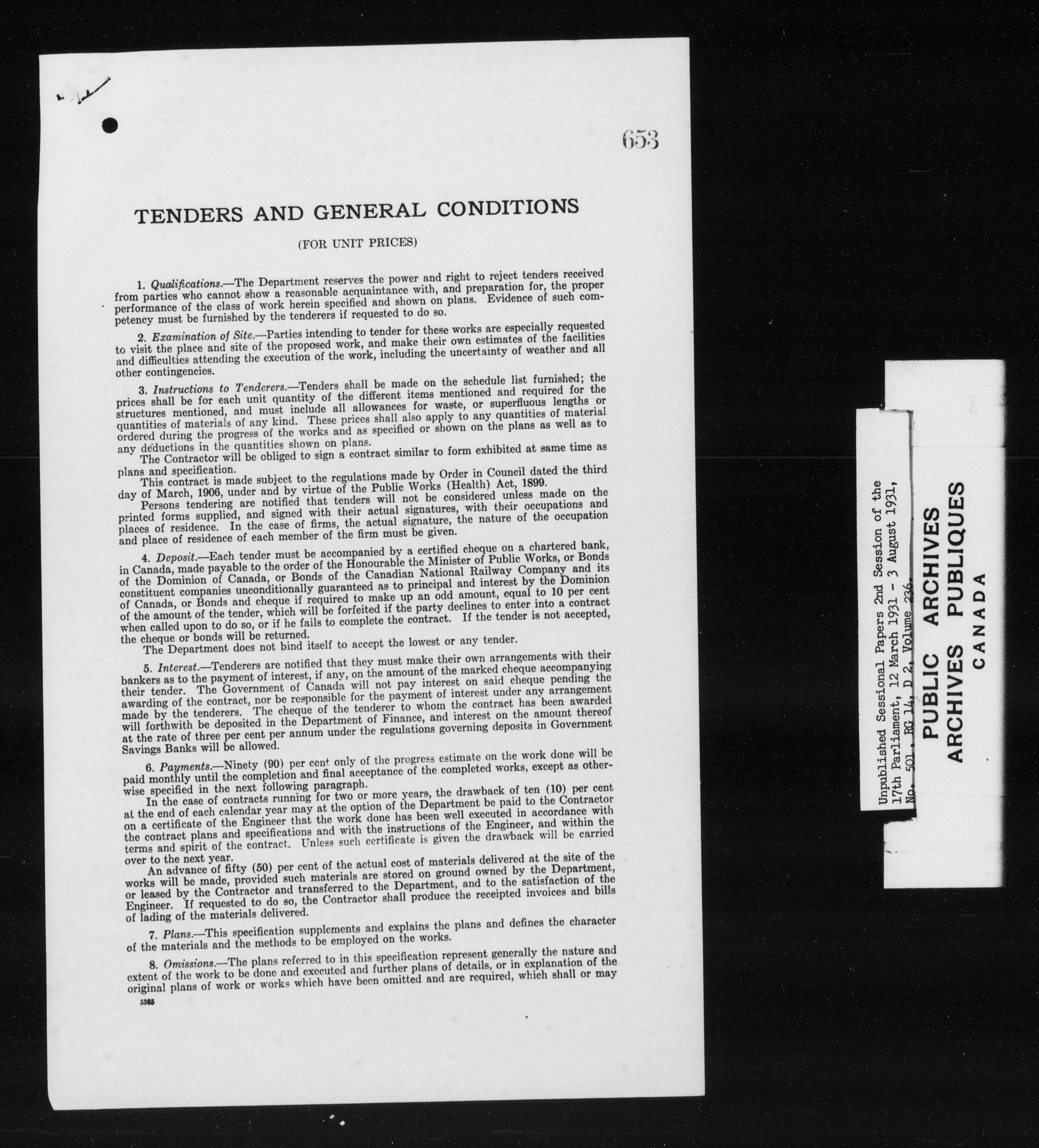 Unpublished sessional papers, 2nd session of the 17th Parliament, 12 March-3 August 1931 - 7582