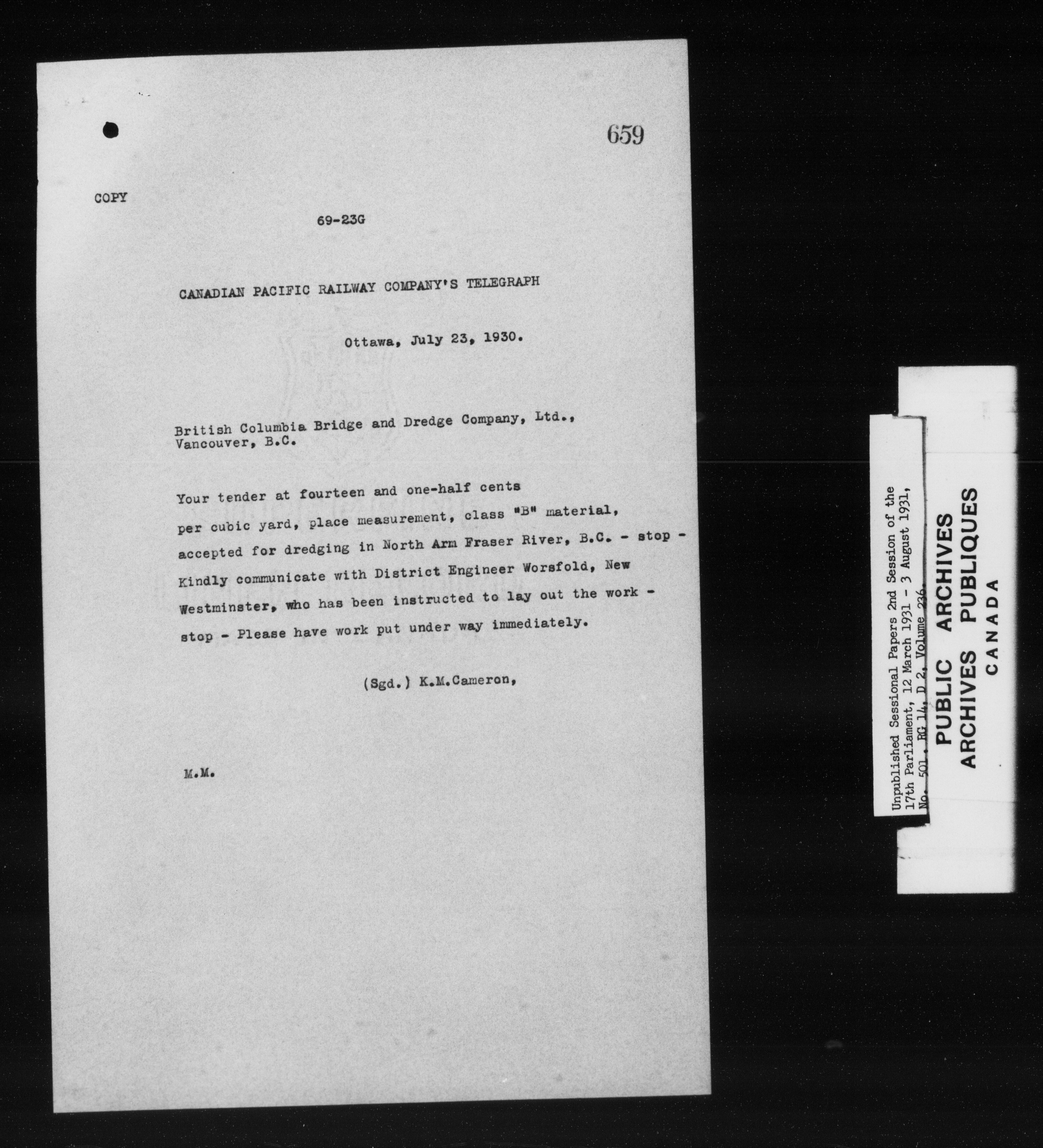 Unpublished sessional papers, 2nd session of the 17th Parliament, 12 March-3 August 1931 - 7582