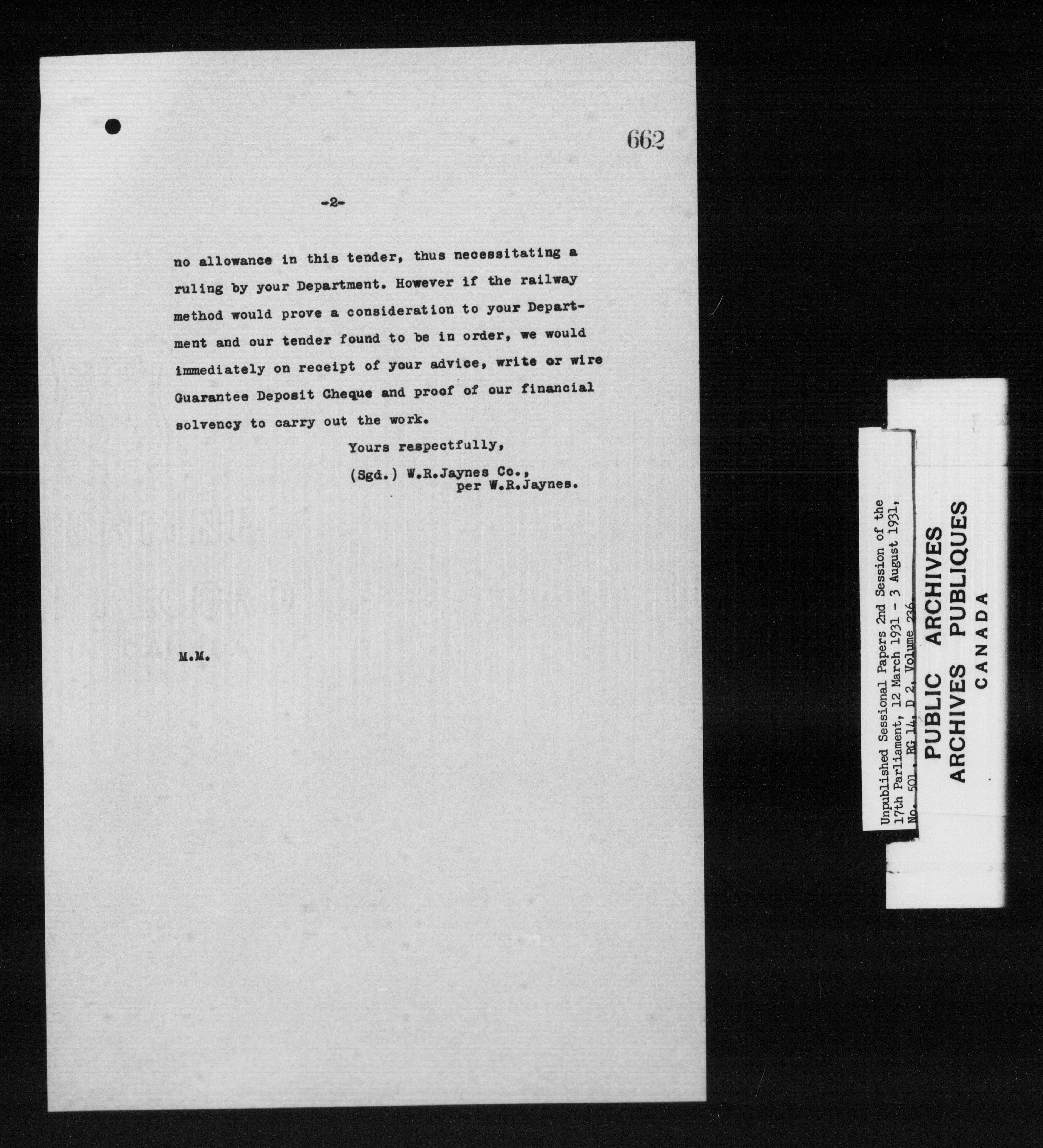 Unpublished sessional papers, 2nd session of the 17th Parliament, 12 March-3 August 1931 - 7582