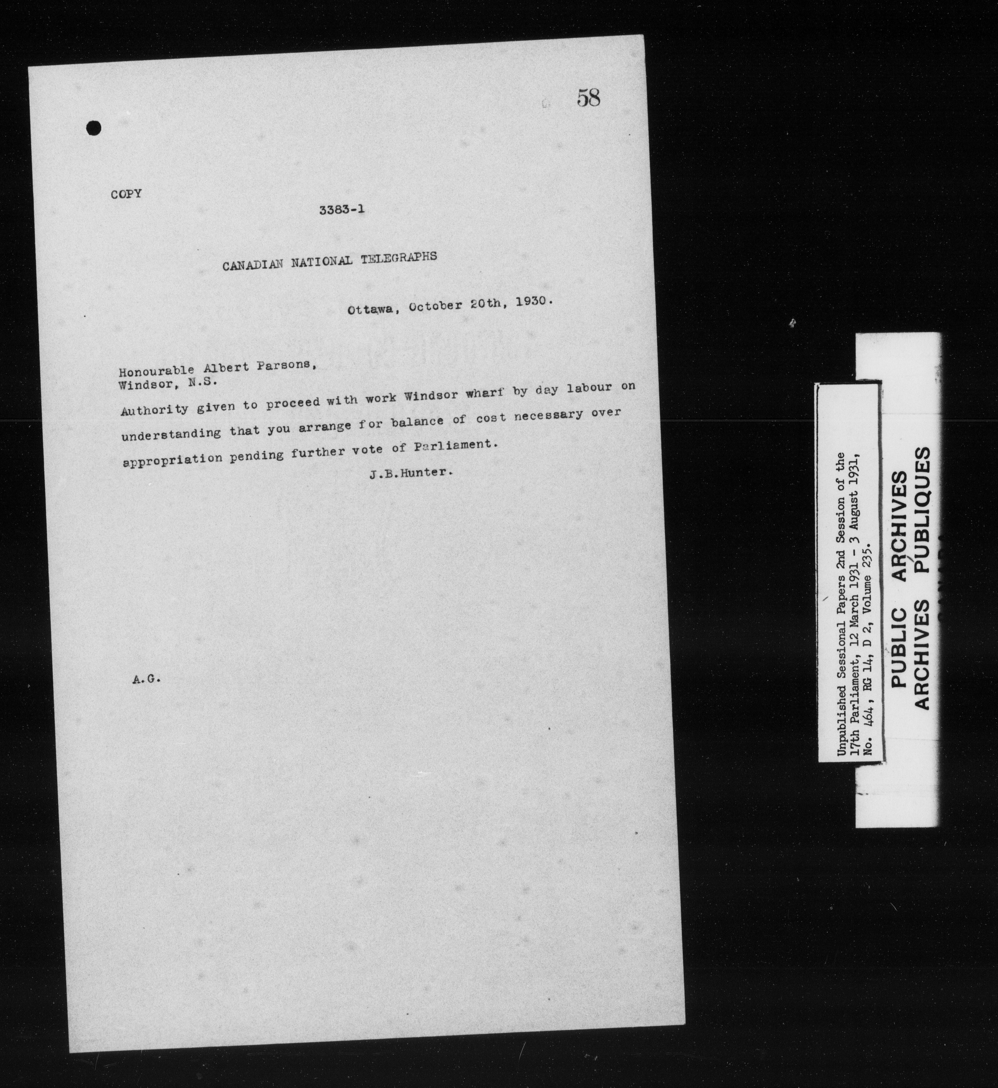 Unpublished sessional papers, 2nd session of the 17th Parliament, 12 March-3 August 1931 - 7582