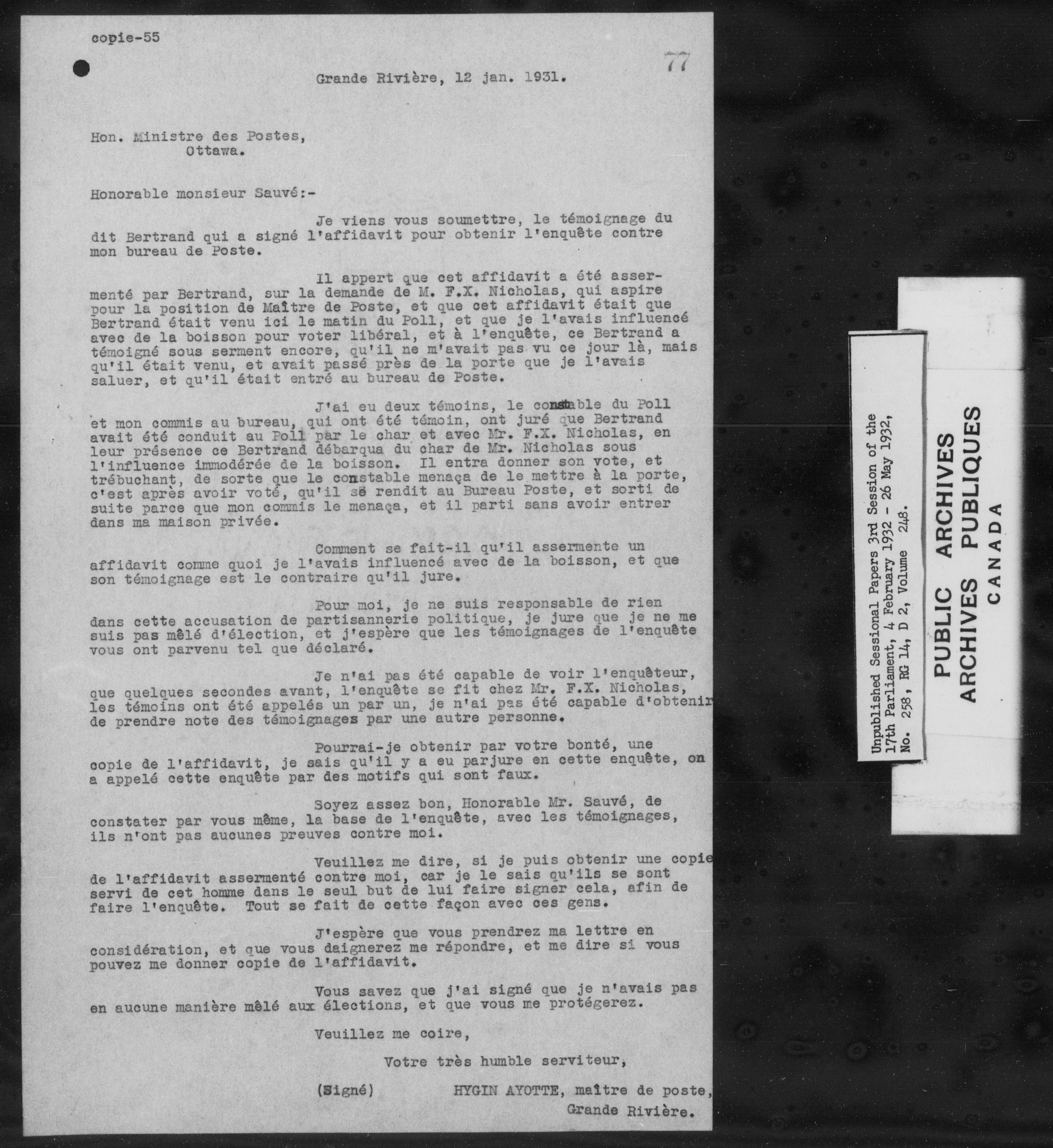 Unpublished sessional papers, 3rd session of the 17th Parliament, 4 February - 26 May 1932 - 7588