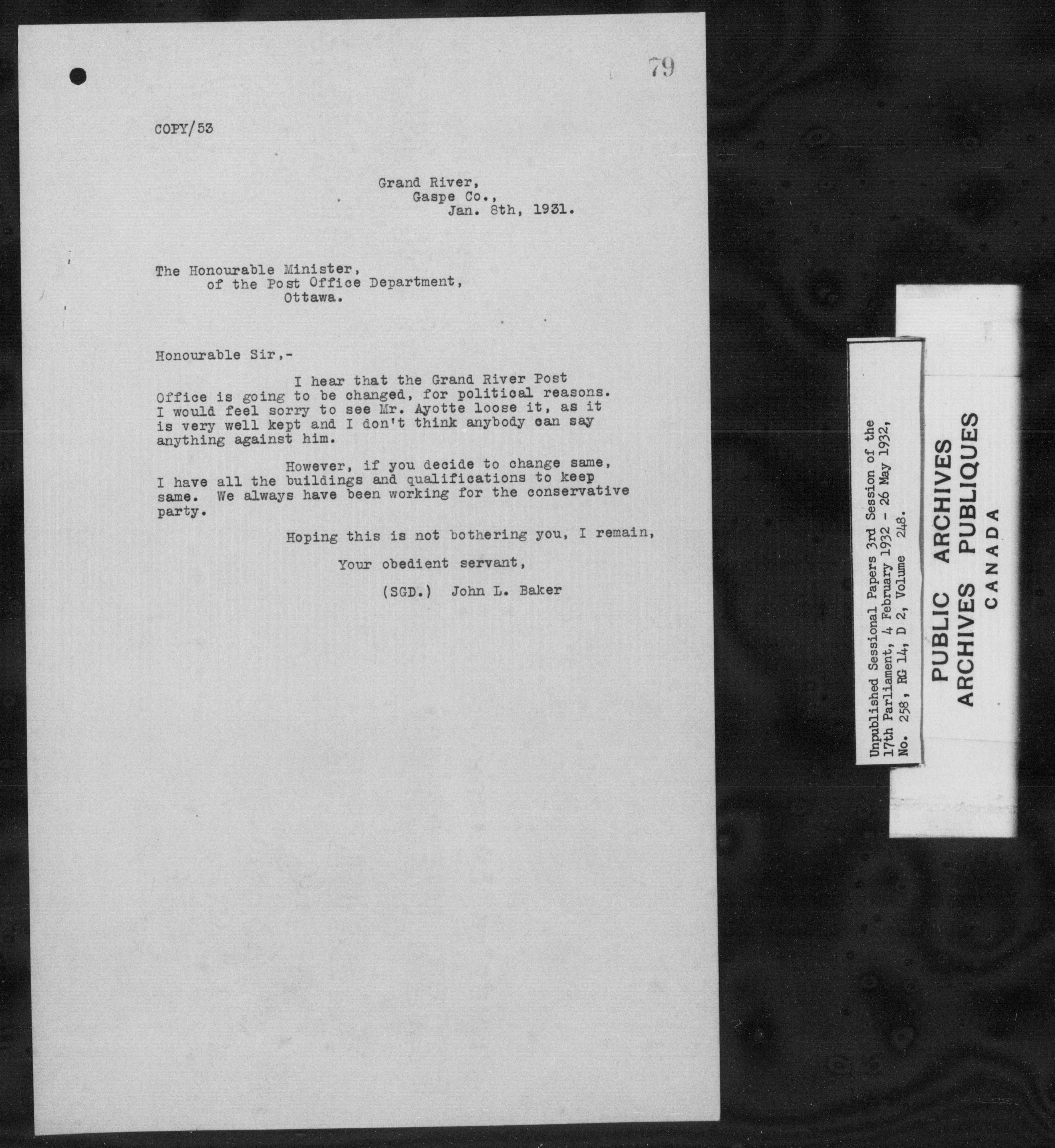 Unpublished sessional papers, 3rd session of the 17th Parliament, 4 February - 26 May 1932 - 7588
