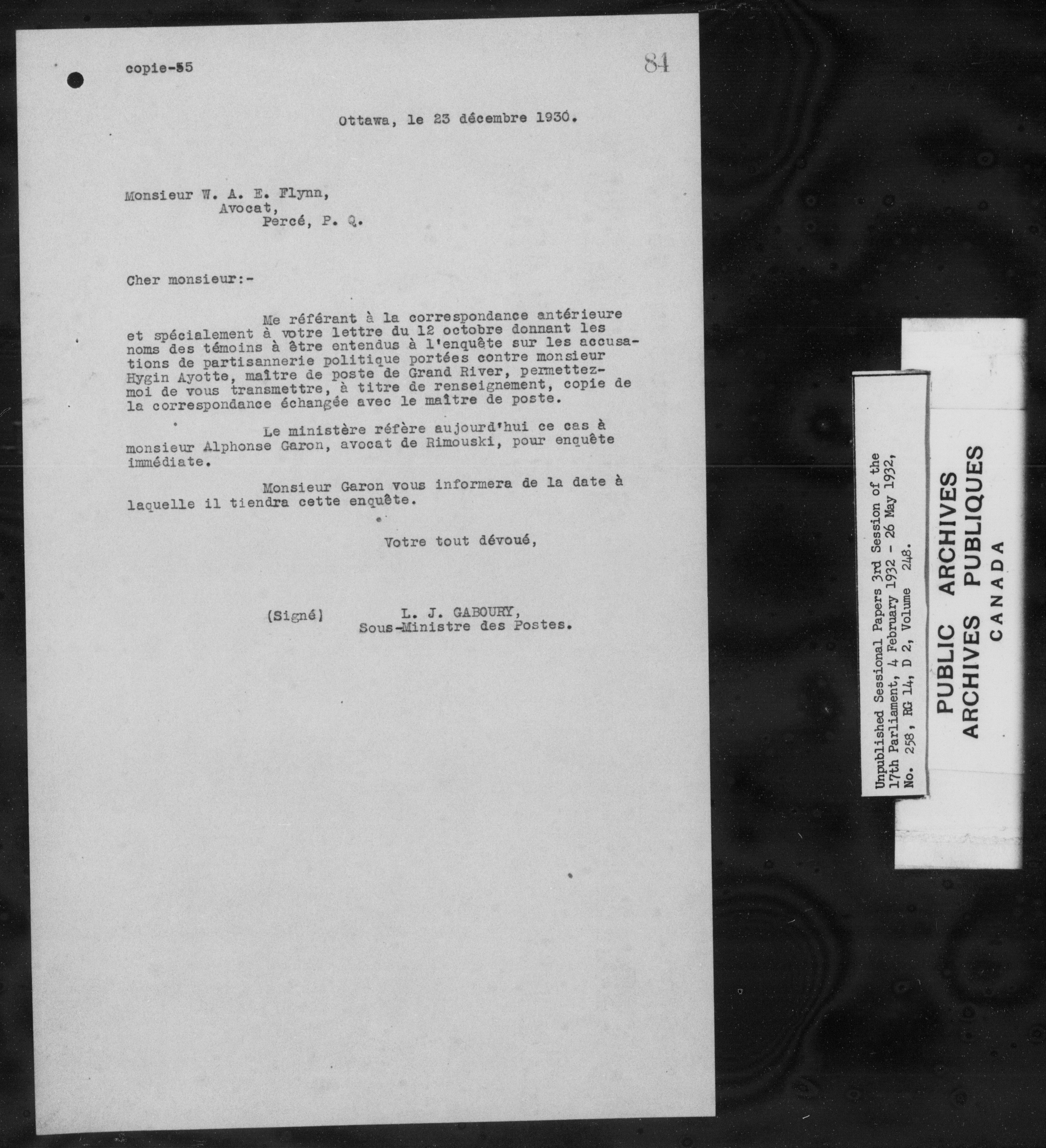 Unpublished sessional papers, 3rd session of the 17th Parliament, 4 February - 26 May 1932 - 7588