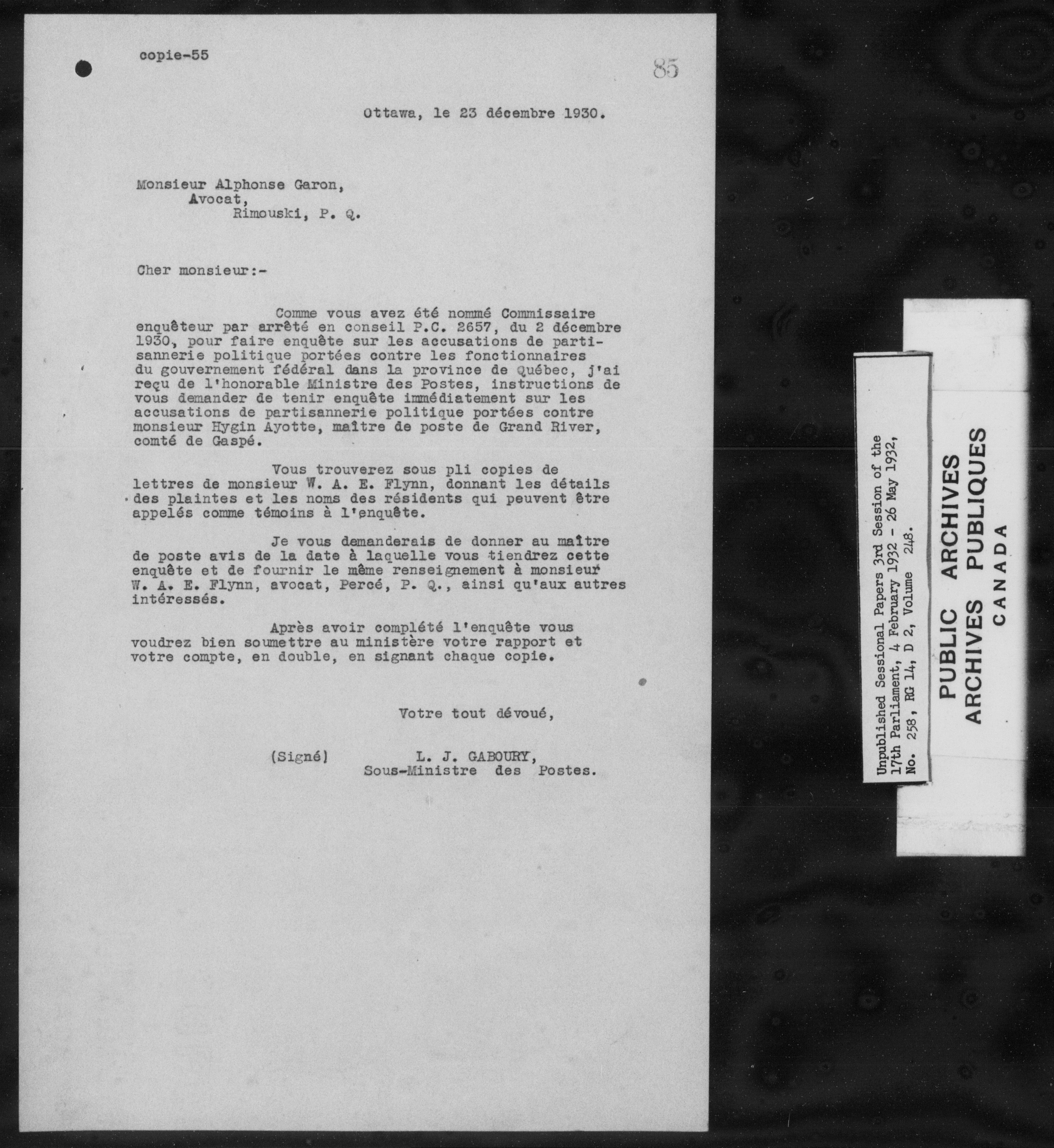 Unpublished sessional papers, 3rd session of the 17th Parliament, 4 February - 26 May 1932 - 7588