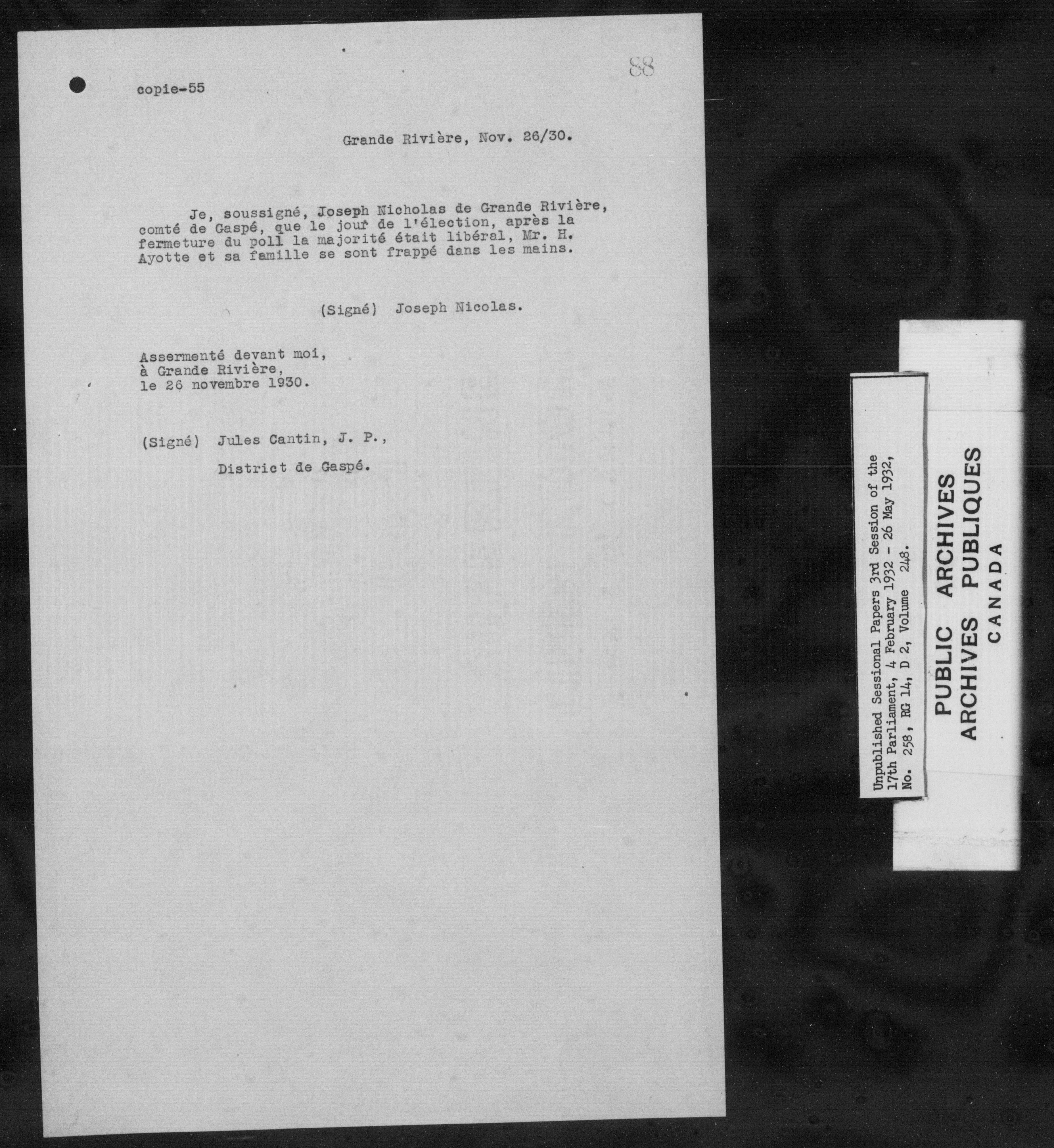 Unpublished sessional papers, 3rd session of the 17th Parliament, 4 February - 26 May 1932 - 7588
