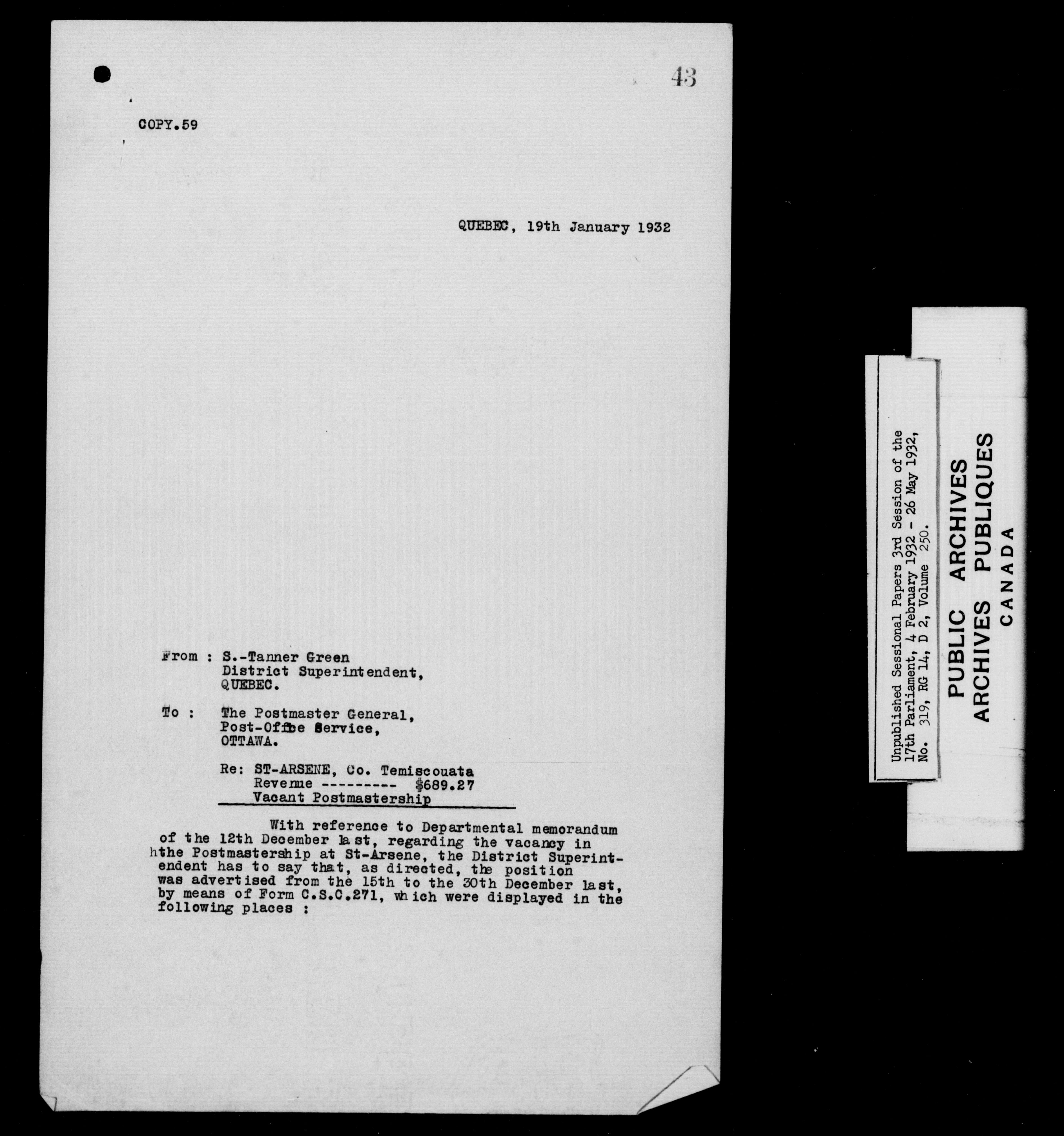 Unpublished sessional papers, 3rd session of the 17th Parliament, 4 February - 26 May 1932 - 7589