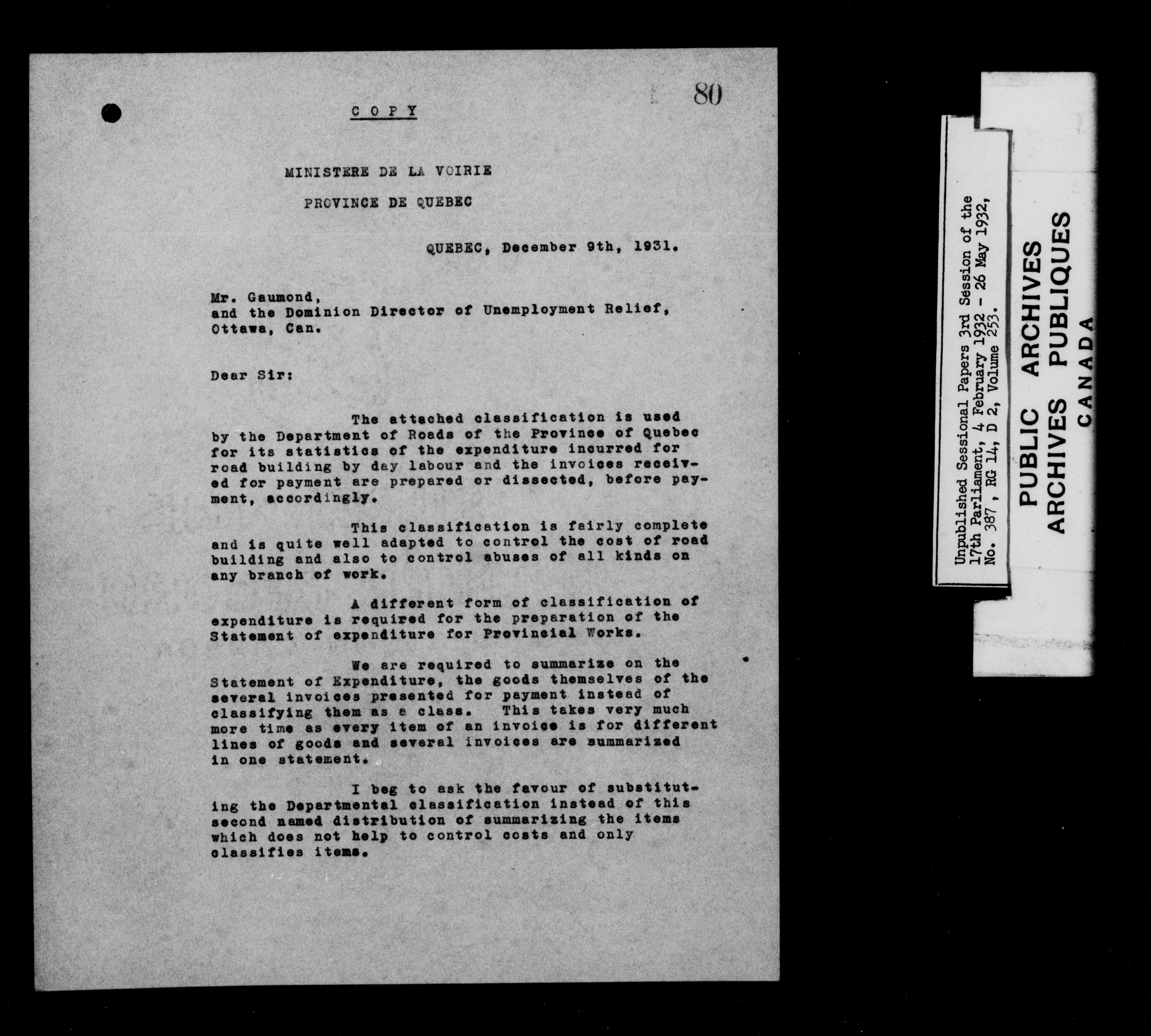 Unpublished sessional papers, 3rd session of the 17th Parliament, 4 February - 26 May 1932 - 7591