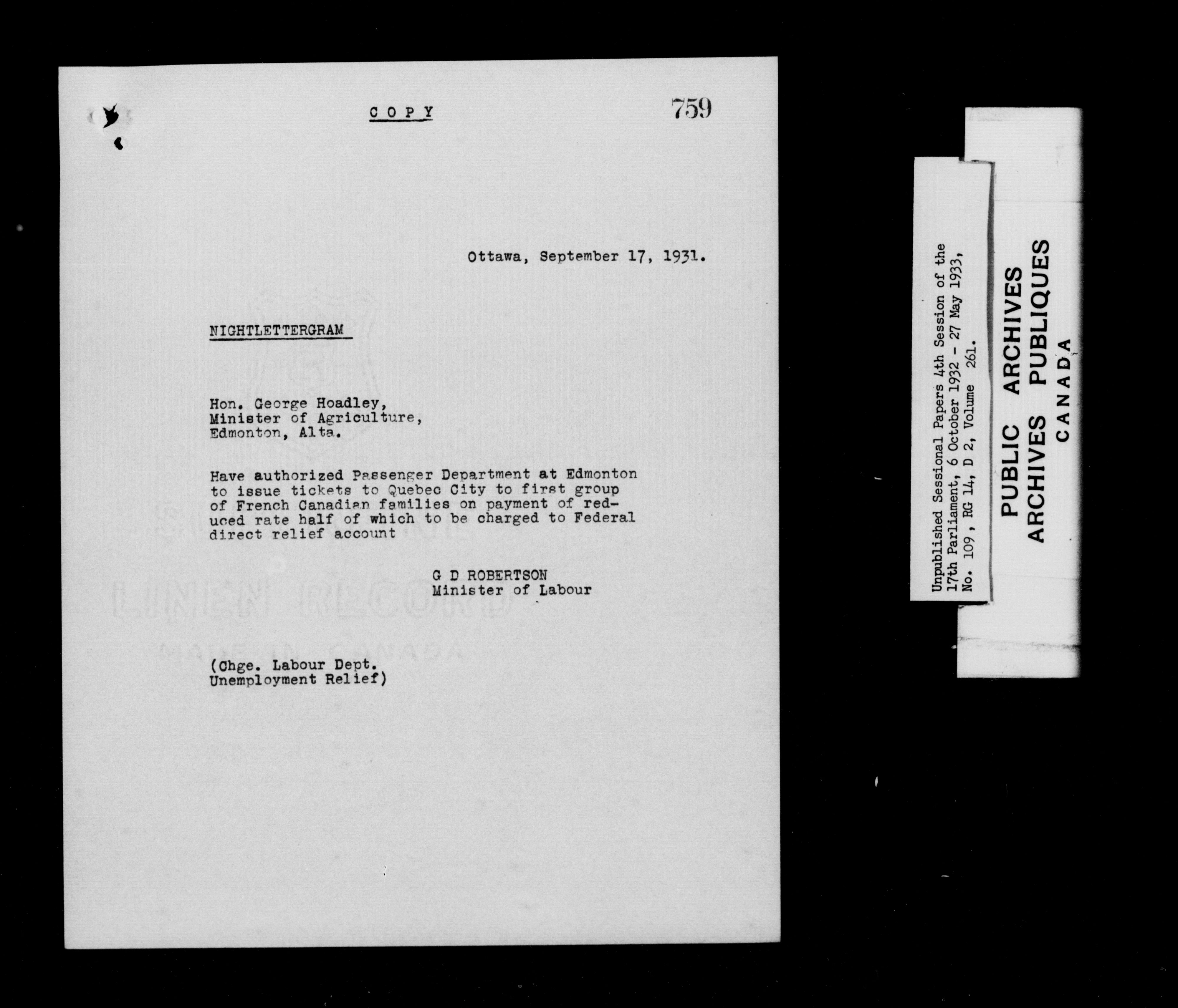 Unpublished sessional papers, 4th session of the 17th Parliament, 6 October 1932 - 27 May 1933 - 7594