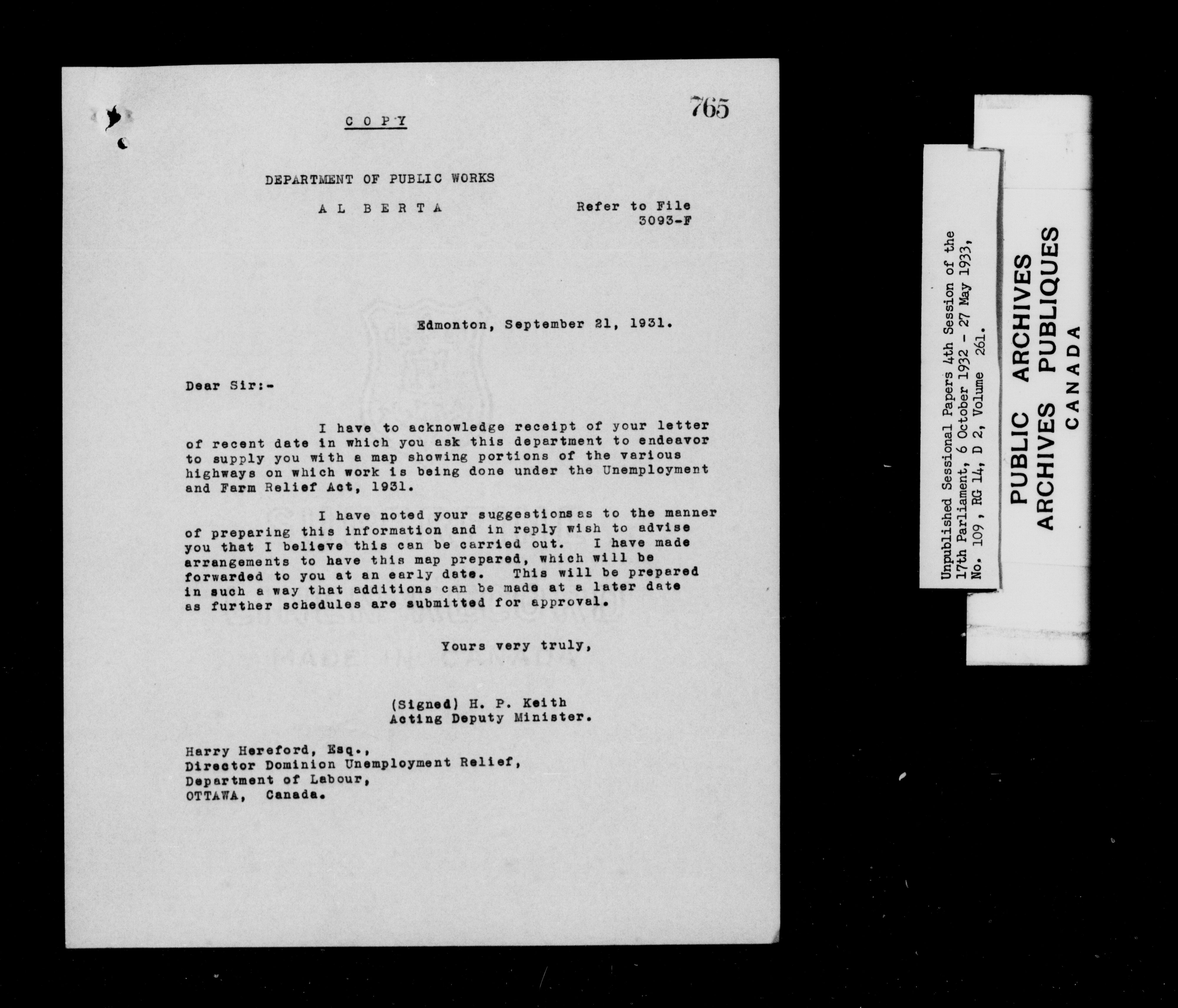 Unpublished sessional papers, 4th session of the 17th Parliament, 6 October 1932 - 27 May 1933 - 7594