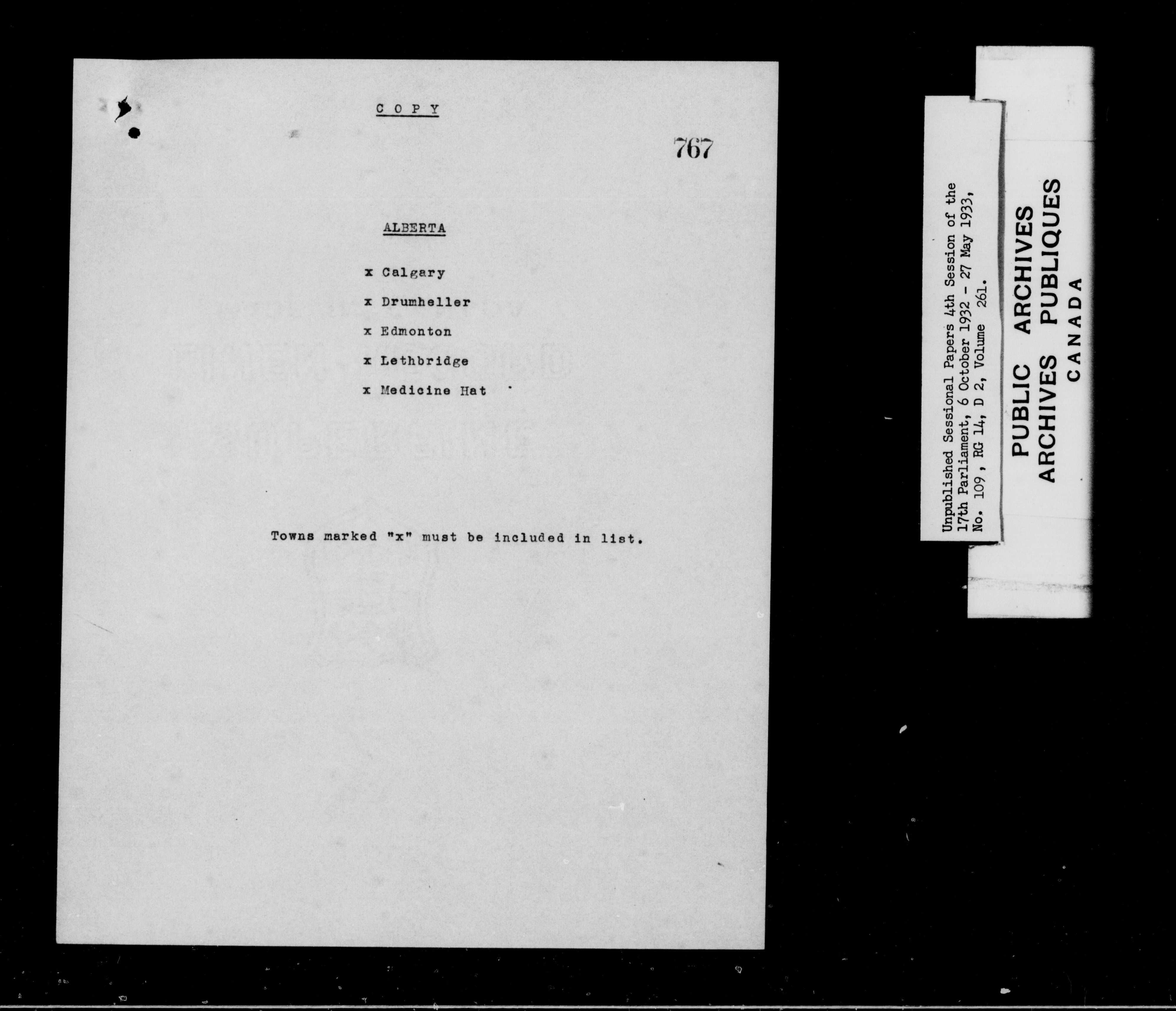 Unpublished sessional papers, 4th session of the 17th Parliament, 6 October 1932 - 27 May 1933 - 7594