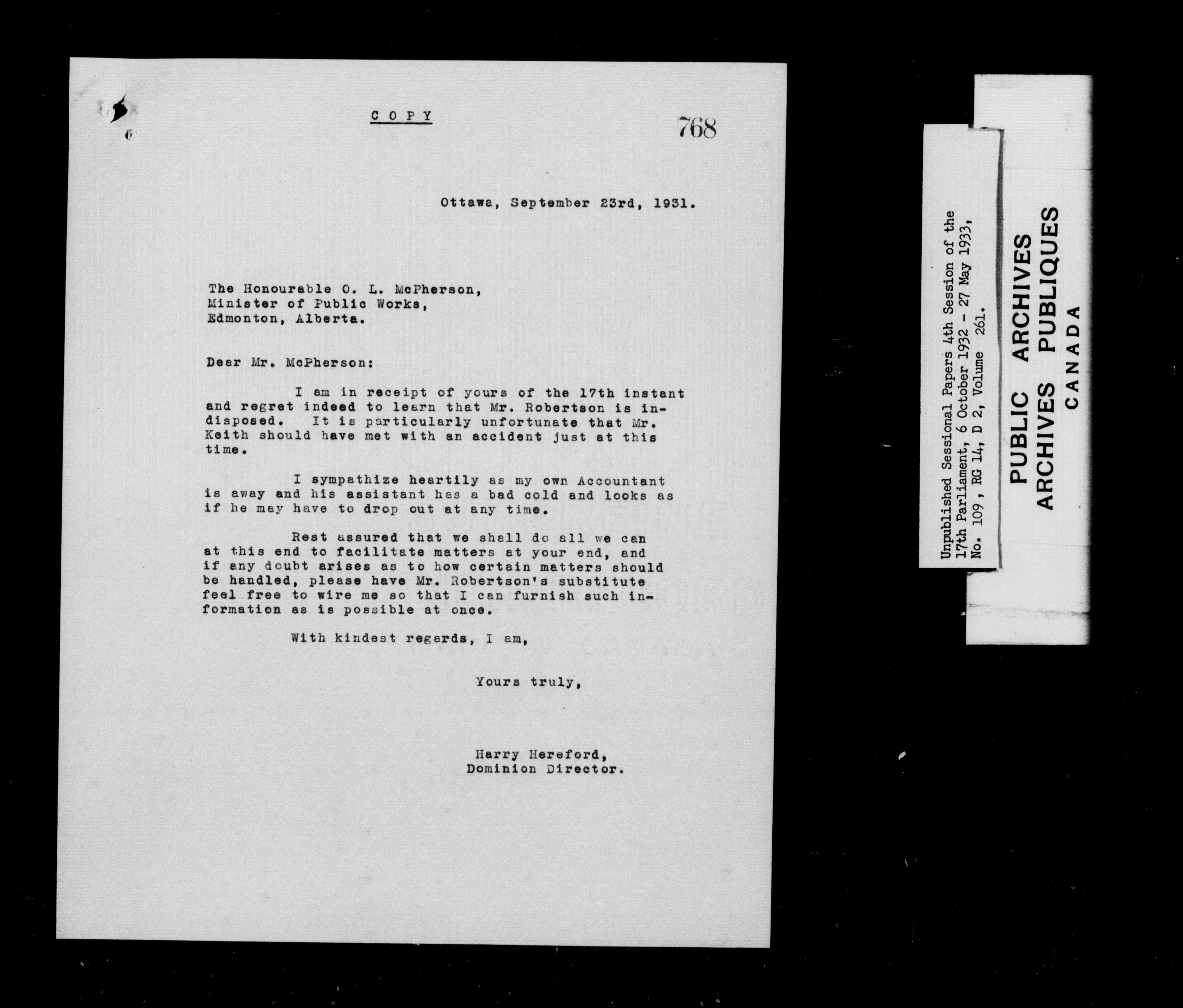 Unpublished sessional papers, 4th session of the 17th Parliament, 6 October 1932 - 27 May 1933 - 7594