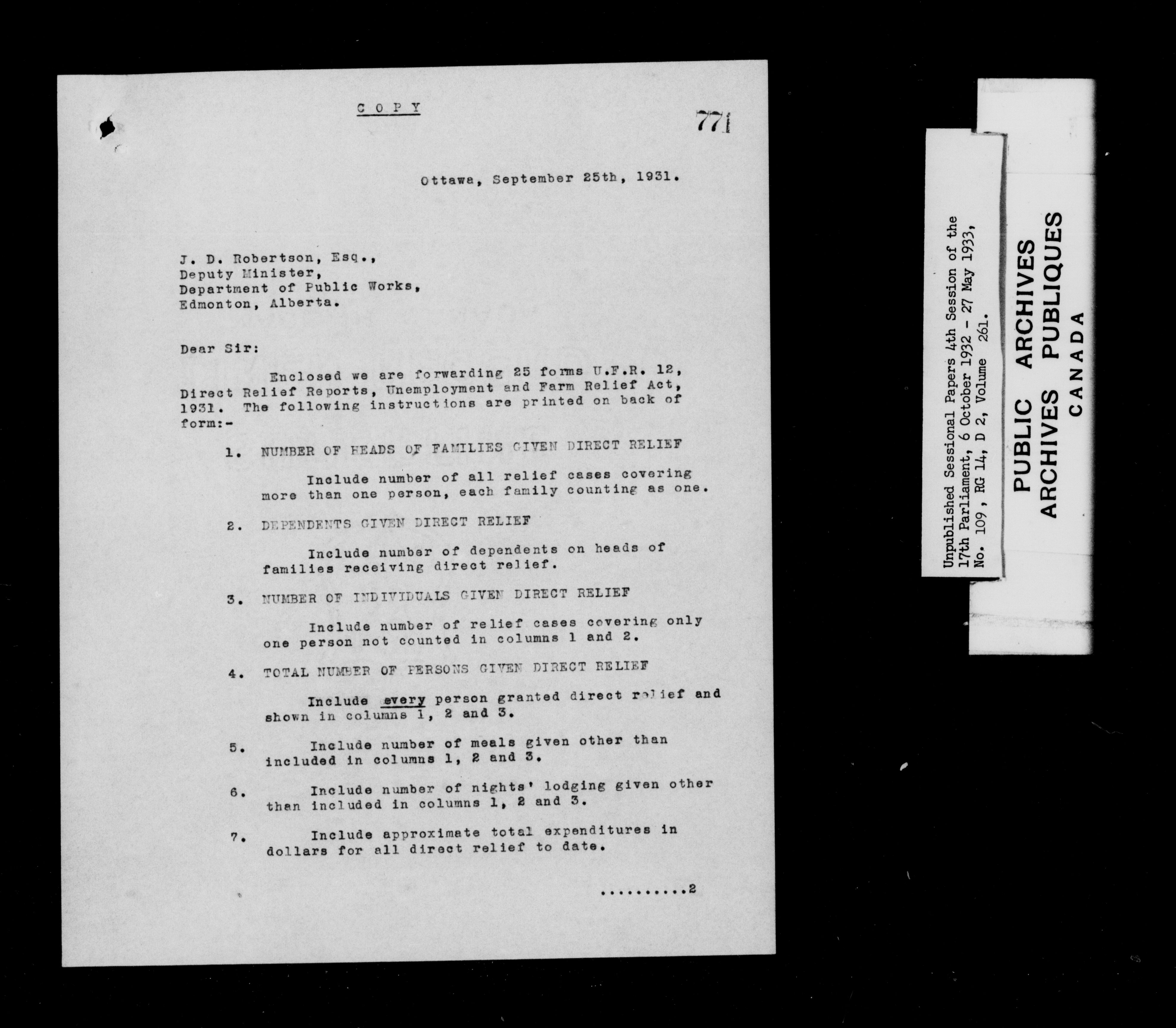 Unpublished sessional papers, 4th session of the 17th Parliament, 6 October 1932 - 27 May 1933 - 7594
