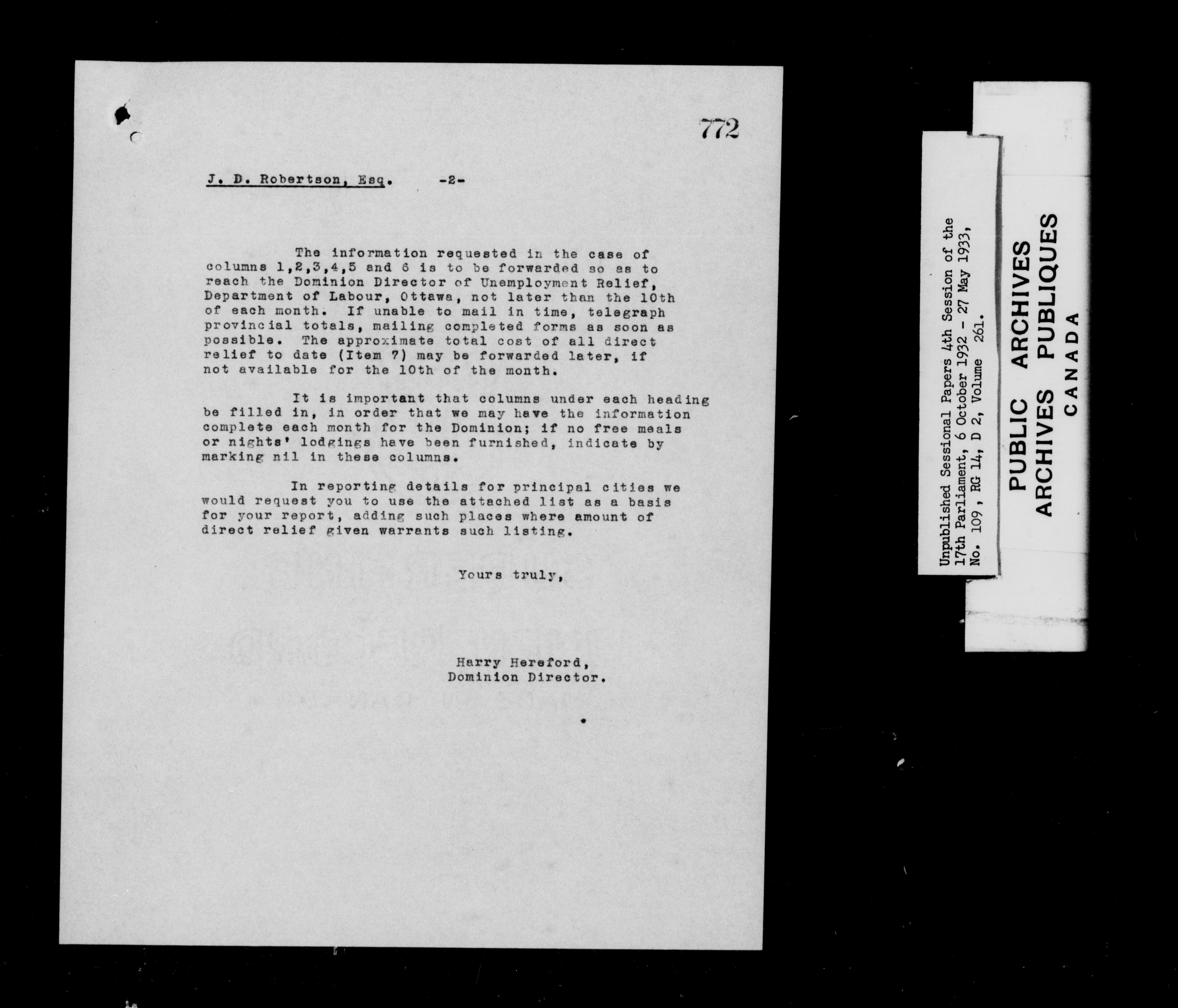 Unpublished sessional papers, 4th session of the 17th Parliament, 6 October 1932 - 27 May 1933 - 7594
