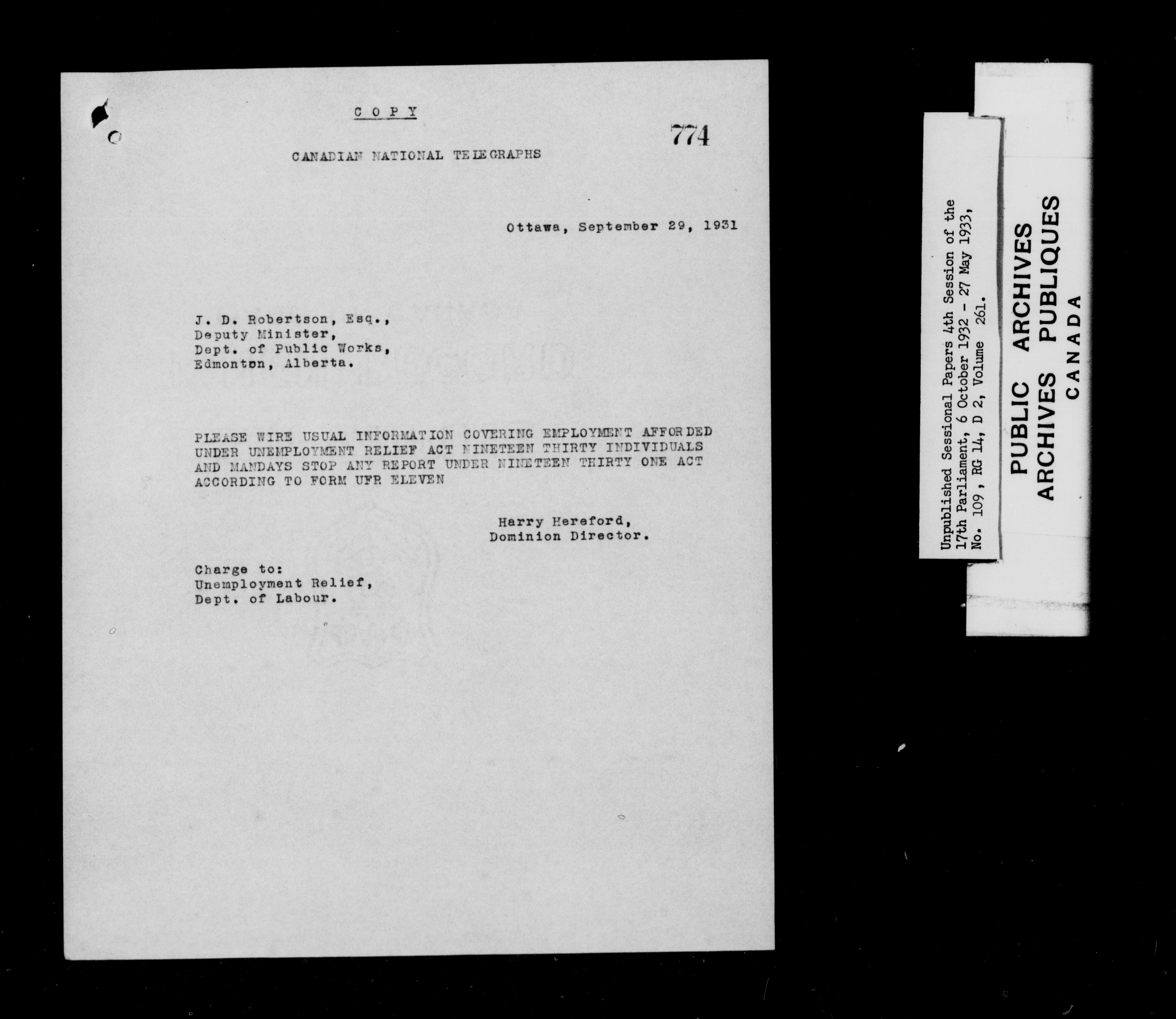 Unpublished sessional papers, 4th session of the 17th Parliament, 6 October 1932 - 27 May 1933 - 7594