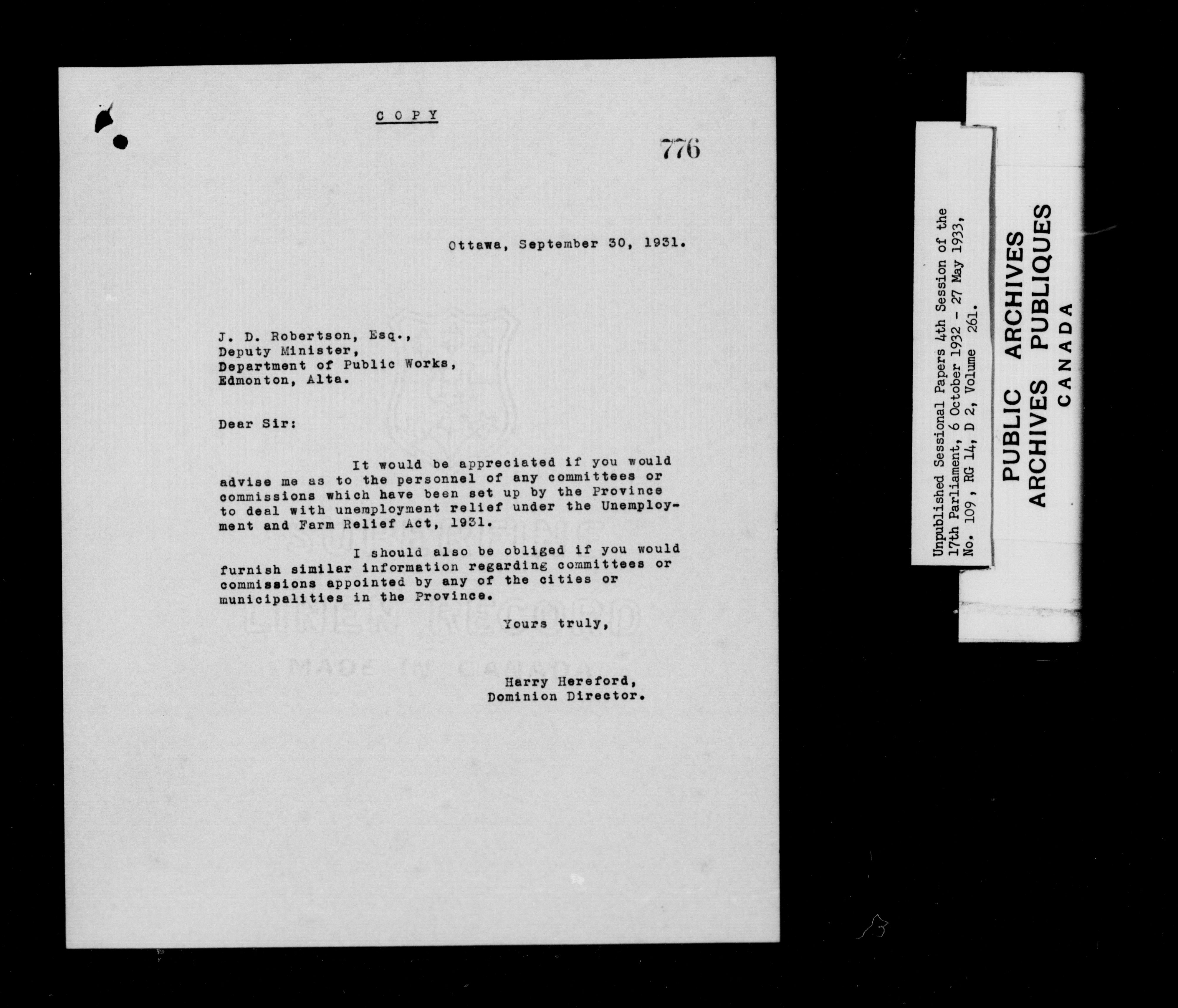 Unpublished sessional papers, 4th session of the 17th Parliament, 6 October 1932 - 27 May 1933 - 7594