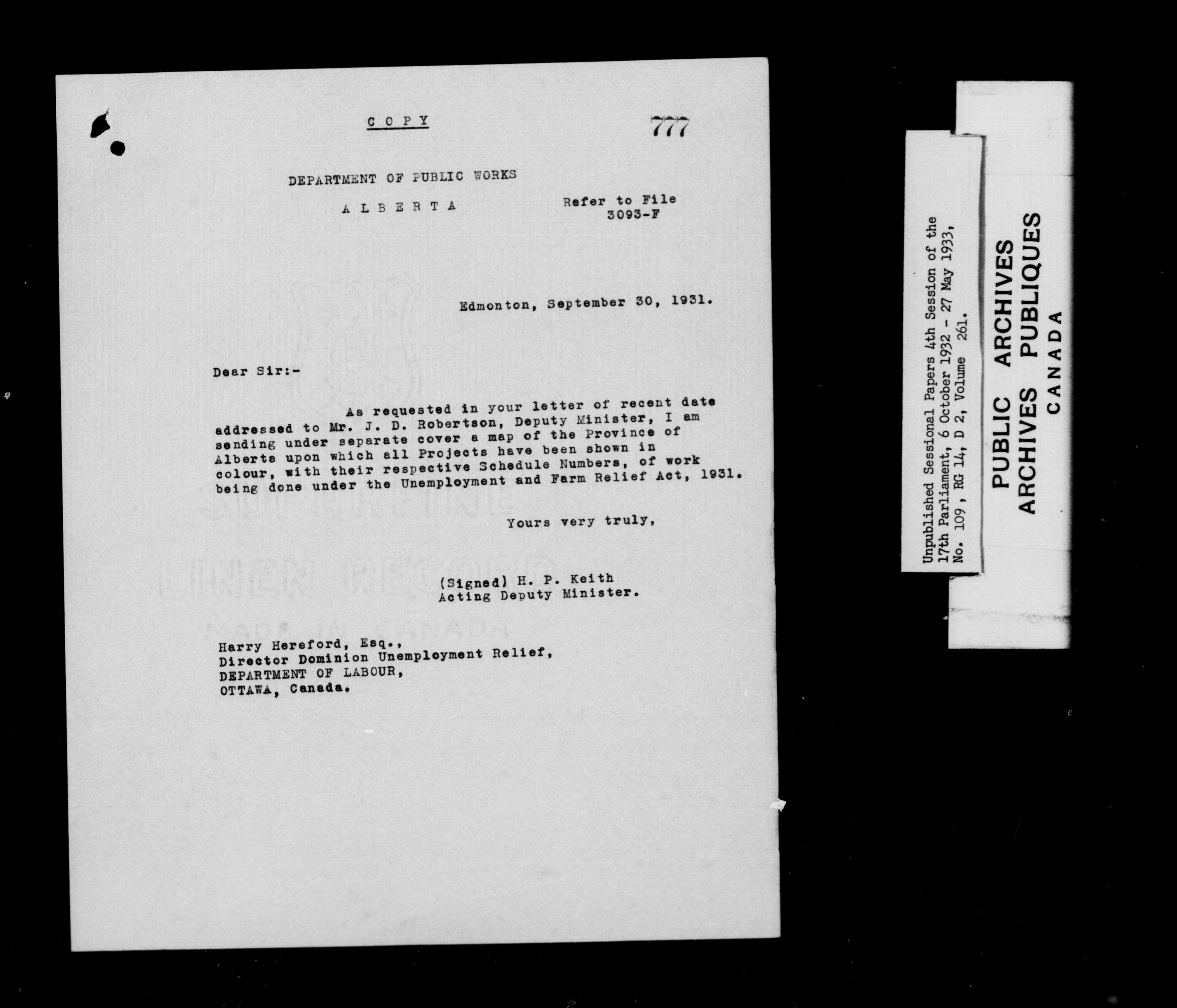 Unpublished sessional papers, 4th session of the 17th Parliament, 6 October 1932 - 27 May 1933 - 7594