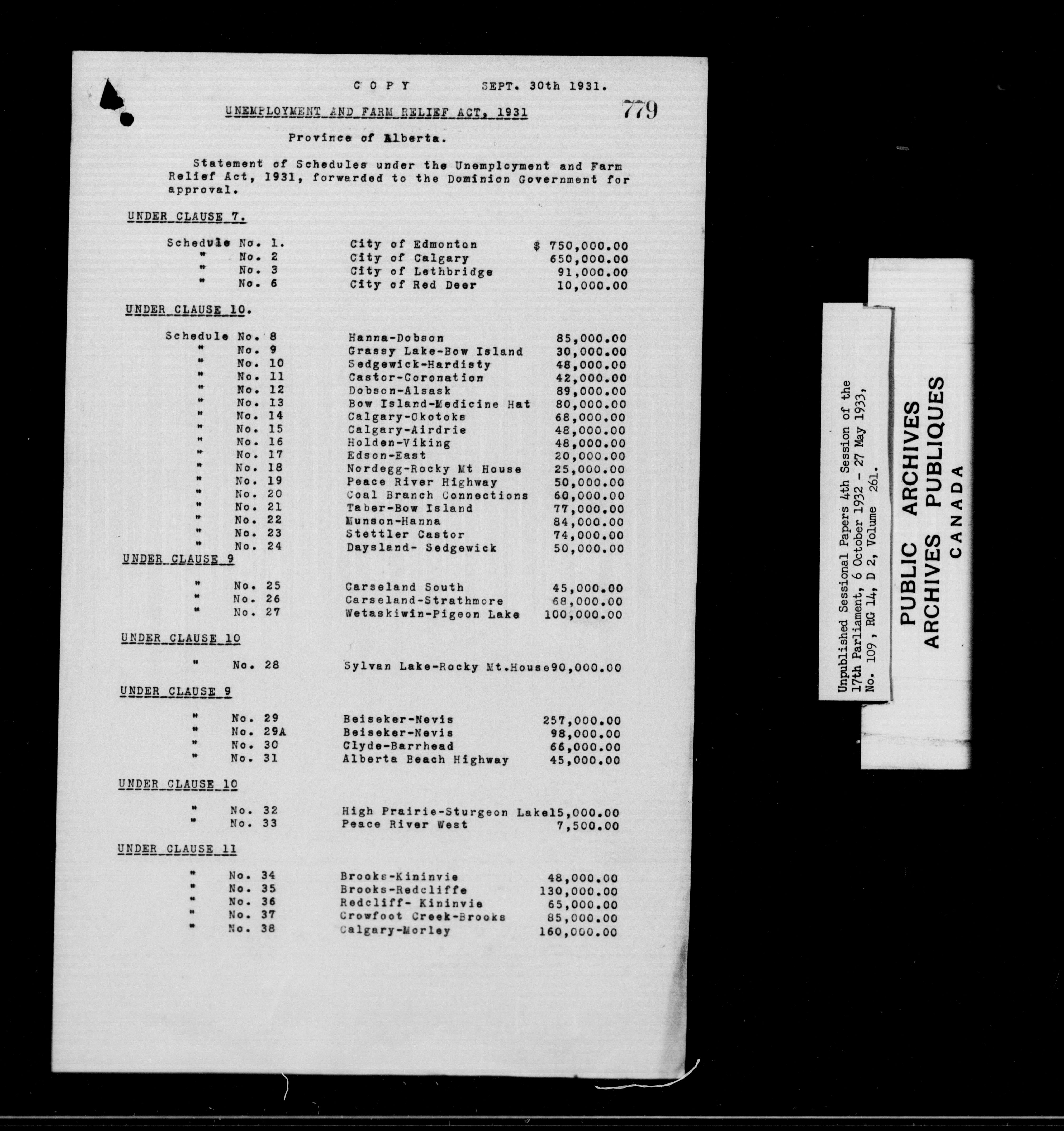 Unpublished sessional papers, 4th session of the 17th Parliament, 6 October 1932 - 27 May 1933 - 7594