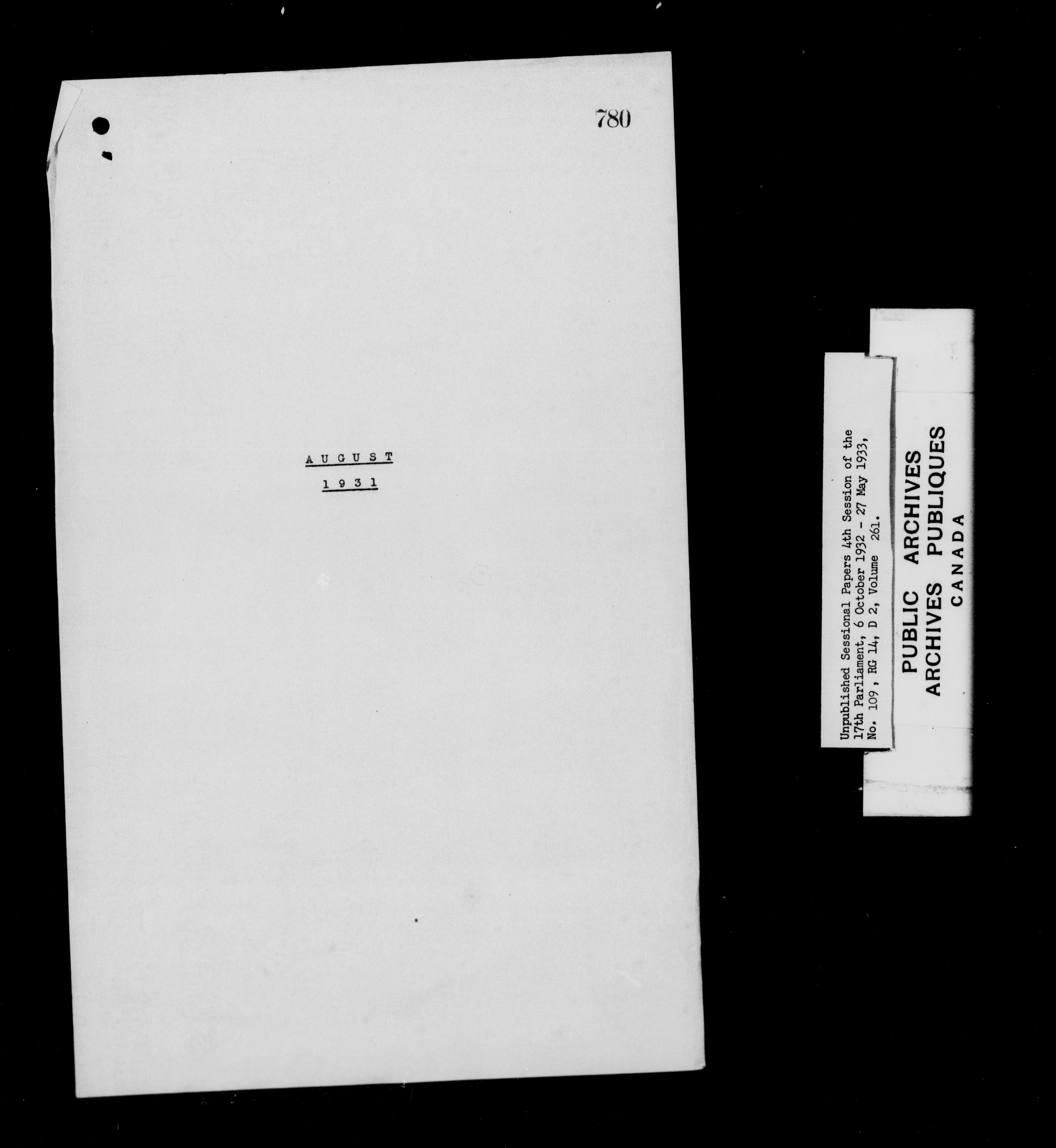 Unpublished sessional papers, 4th session of the 17th Parliament, 6 October 1932 - 27 May 1933 - 7594