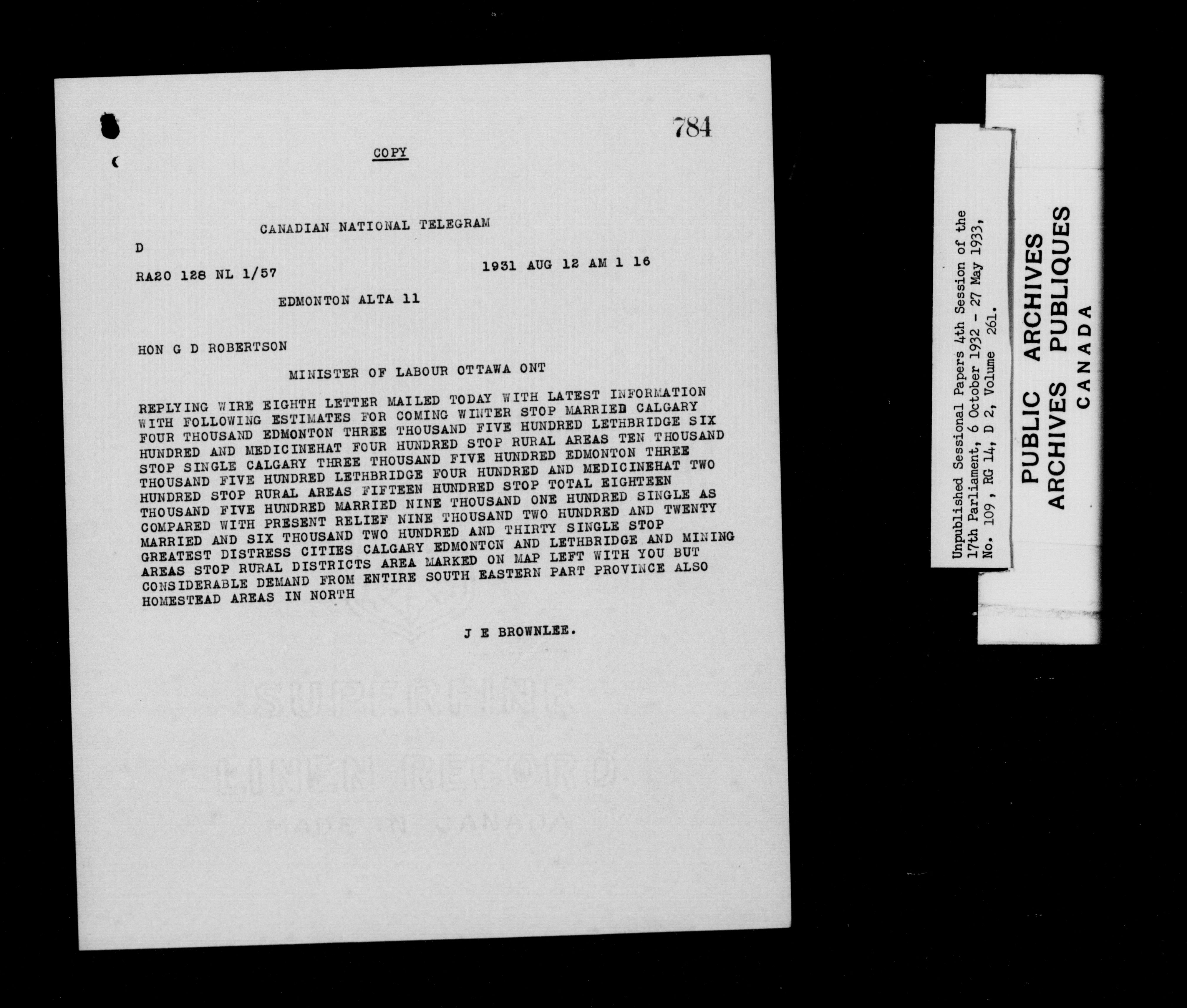 Unpublished sessional papers, 4th session of the 17th Parliament, 6 October 1932 - 27 May 1933 - 7594
