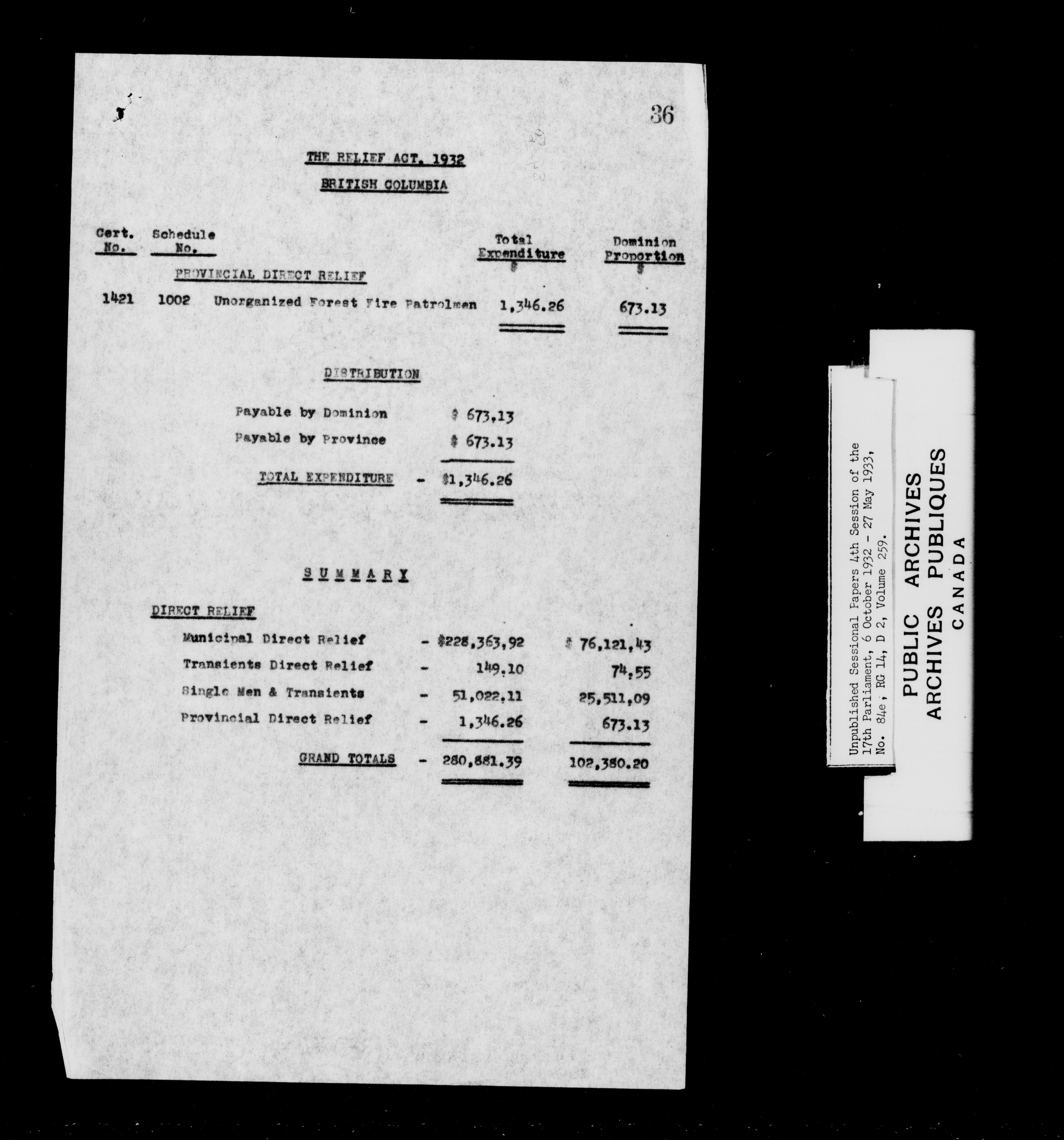 Unpublished sessional papers, 4th session of the 17th Parliament, 6 October 1932 - 27 May 1933 - 7594