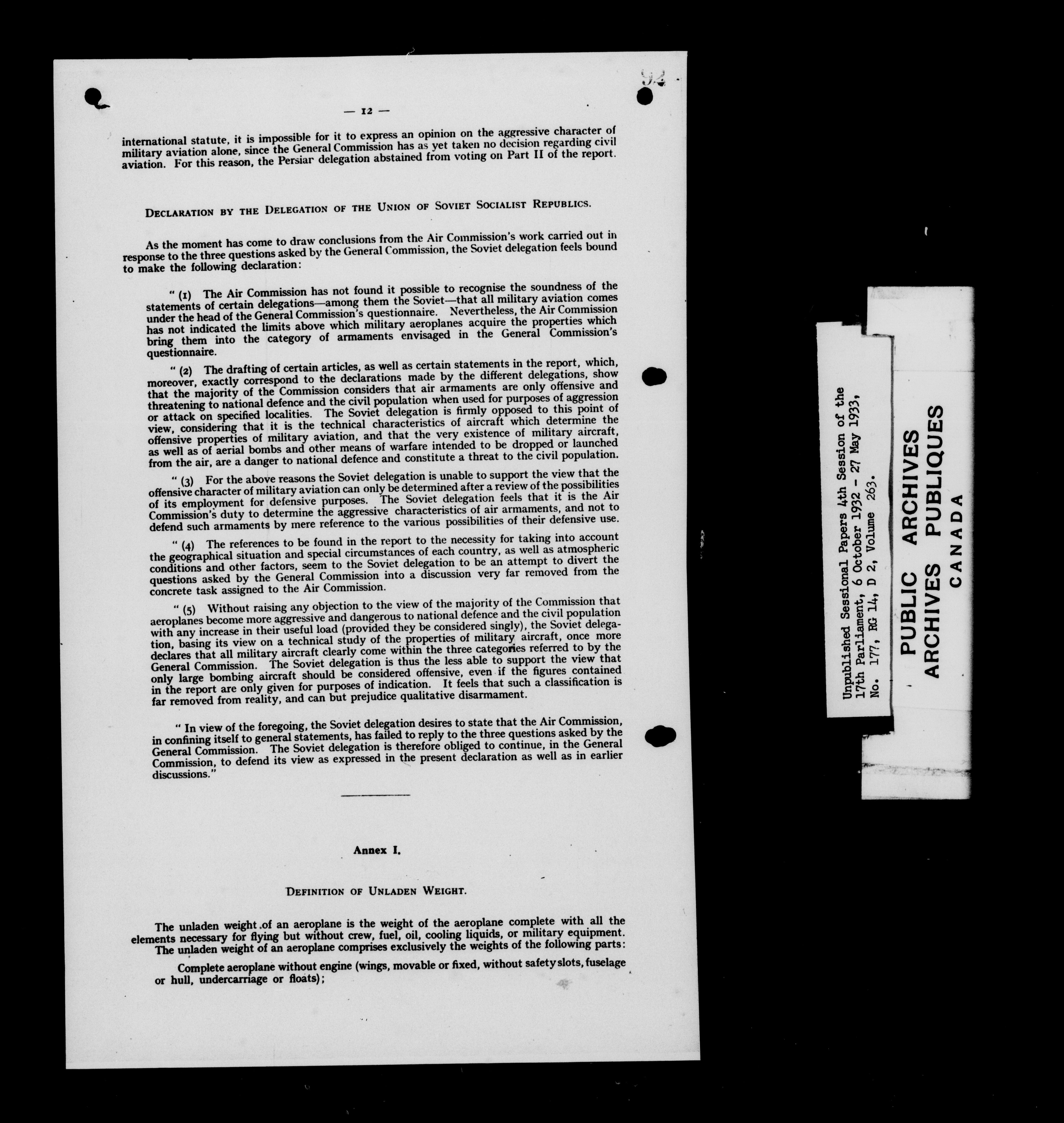 Unpublished sessional papers, 4th session of the 17th Parliament, 6 October 1932 - 27 May 1933 - 7596