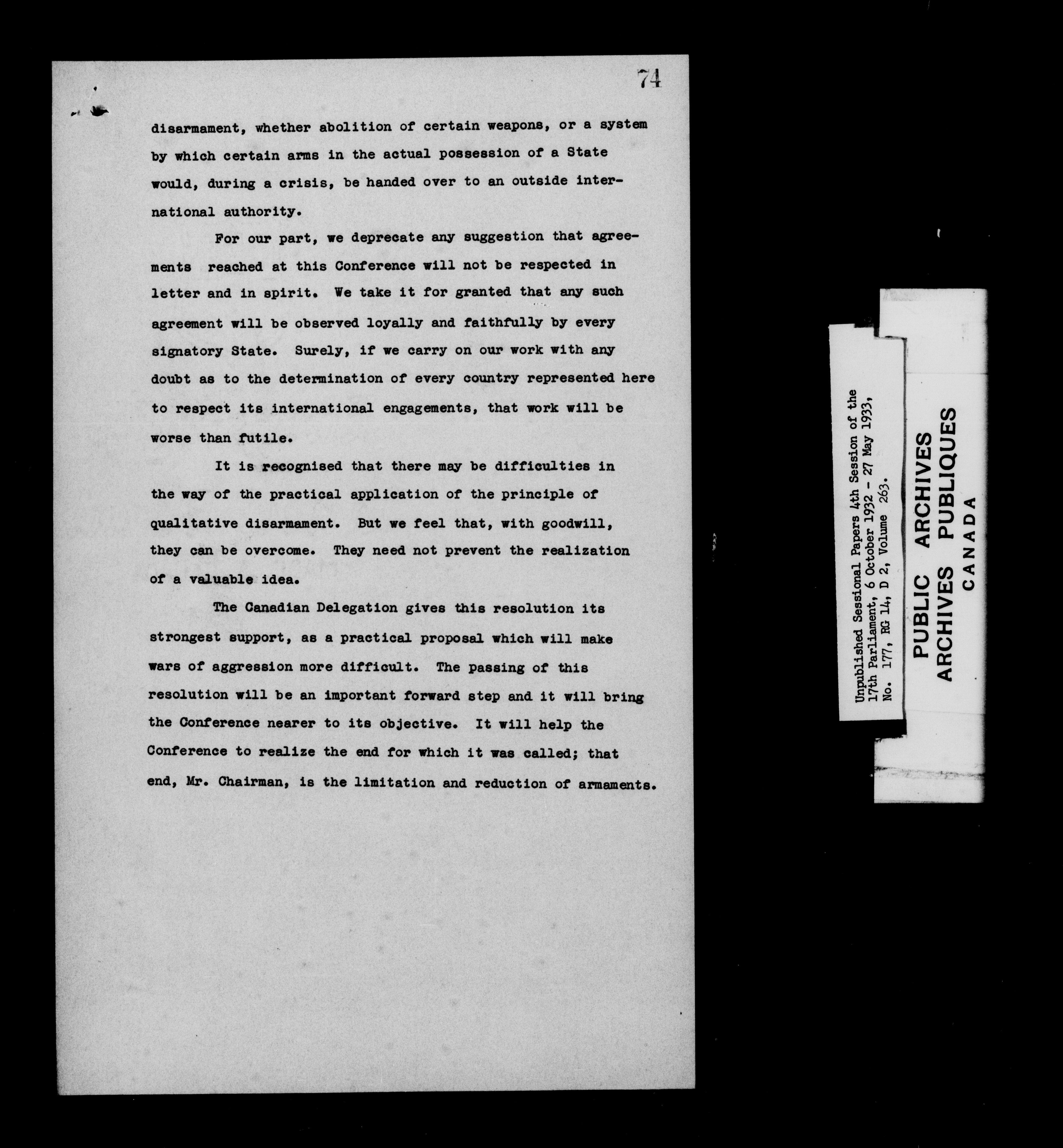 Unpublished sessional papers, 4th session of the 17th Parliament, 6 October 1932 - 27 May 1933 - 7596