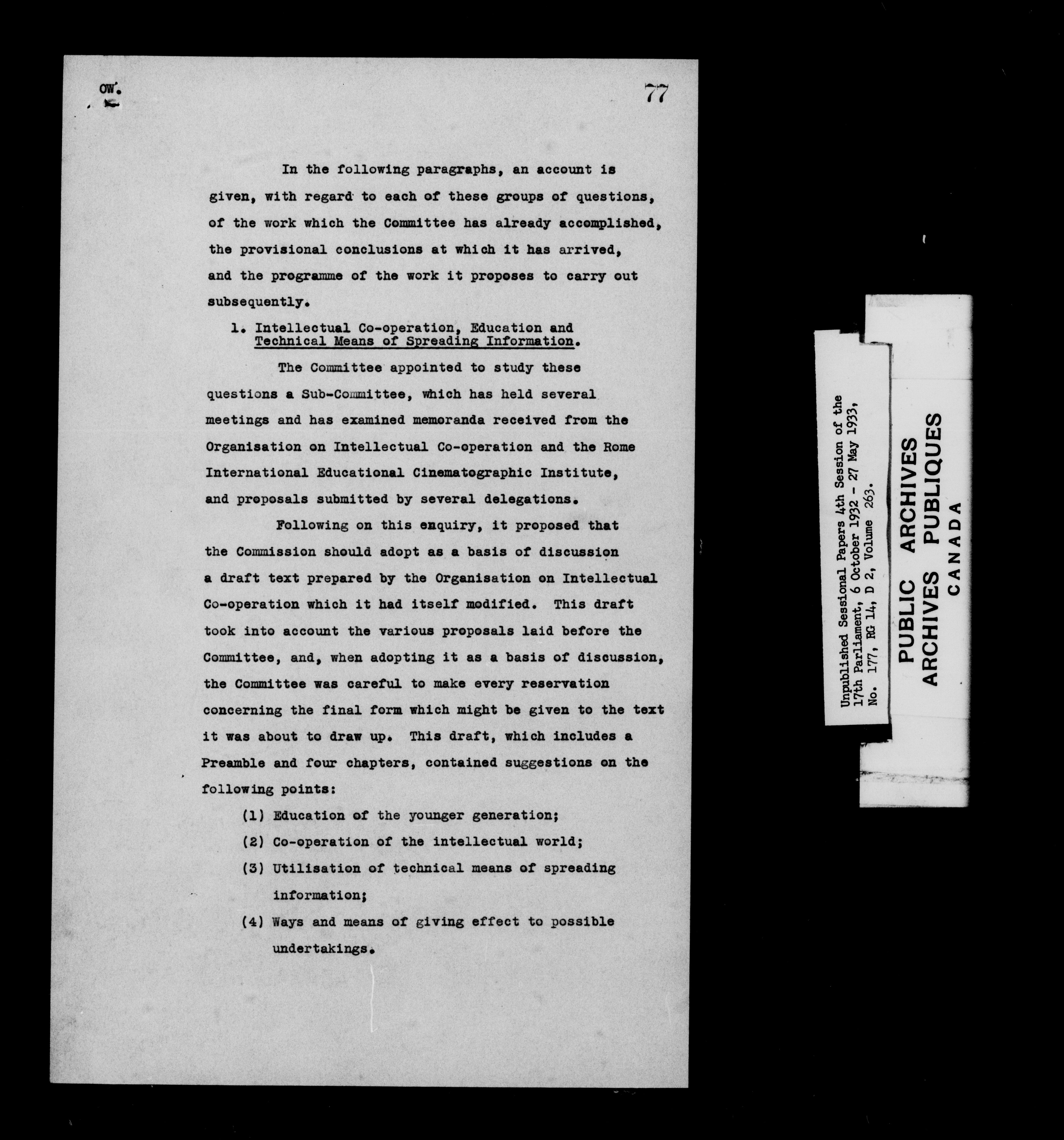 Unpublished sessional papers, 4th session of the 17th Parliament, 6 October 1932 - 27 May 1933 - 7596
