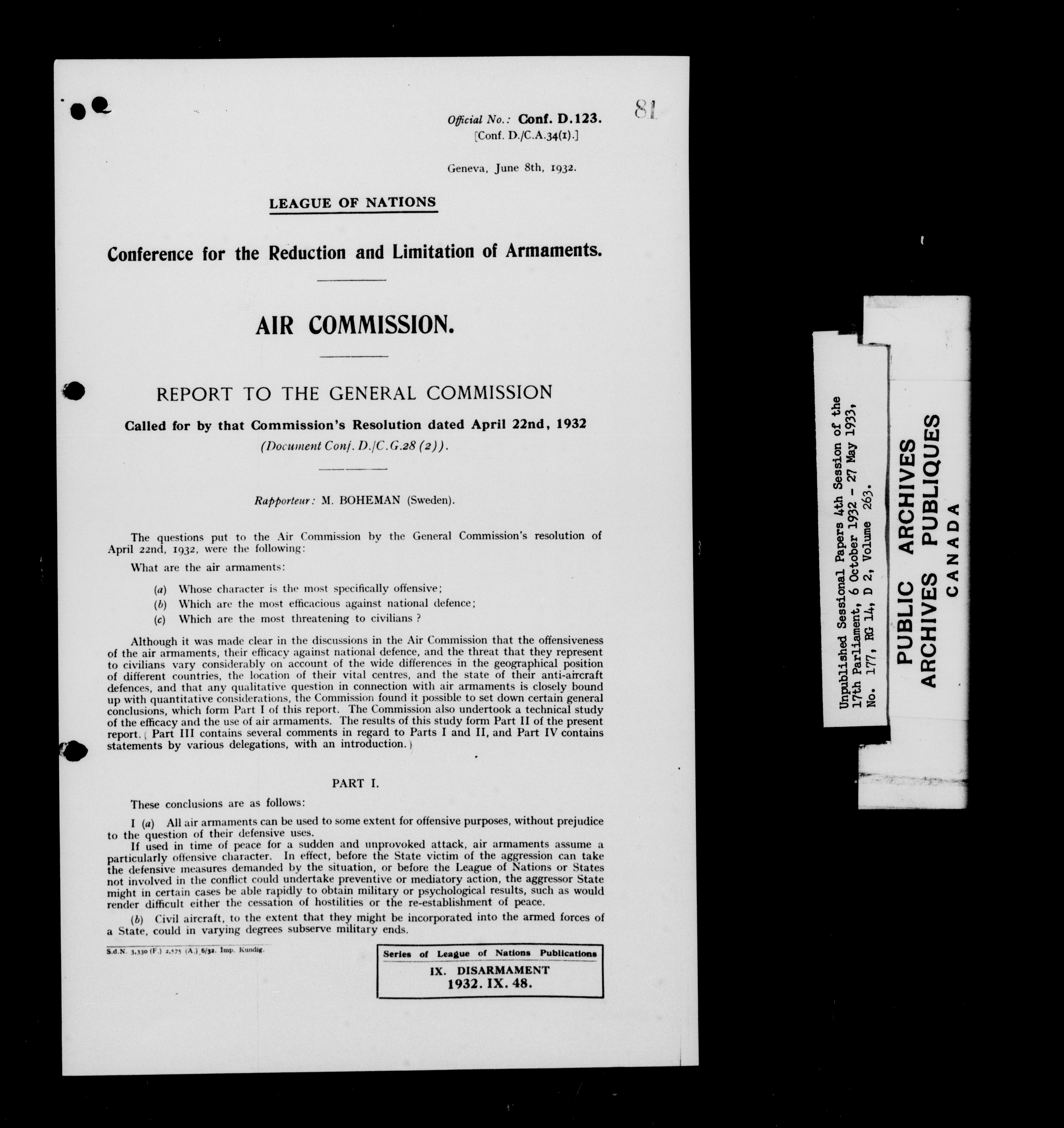 Unpublished sessional papers, 4th session of the 17th Parliament, 6 October 1932 - 27 May 1933 - 7596