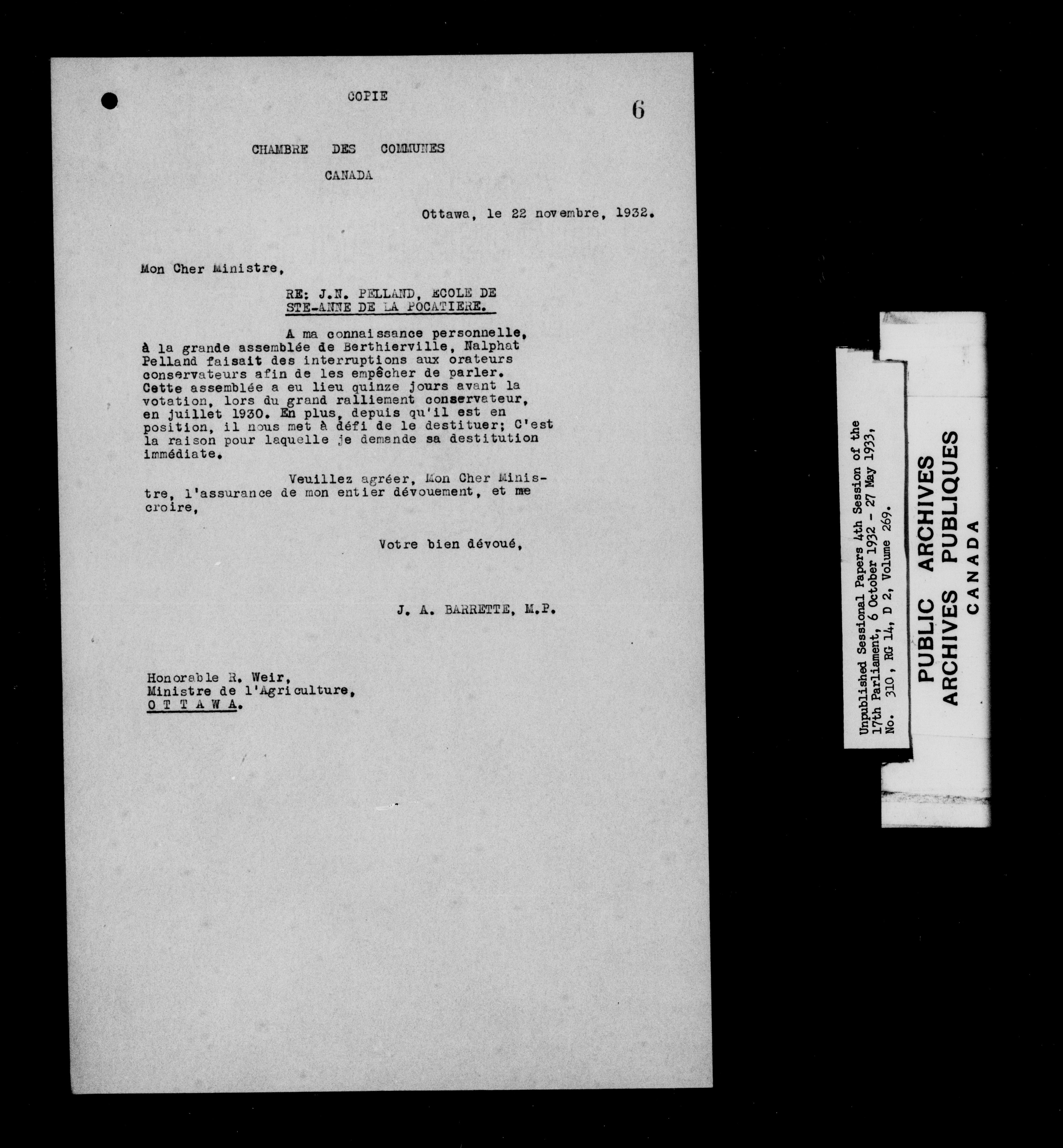 Unpublished sessional papers, 4th session of the 17th Parliament, 6 October 1932 - 27 May 1933 - 7600