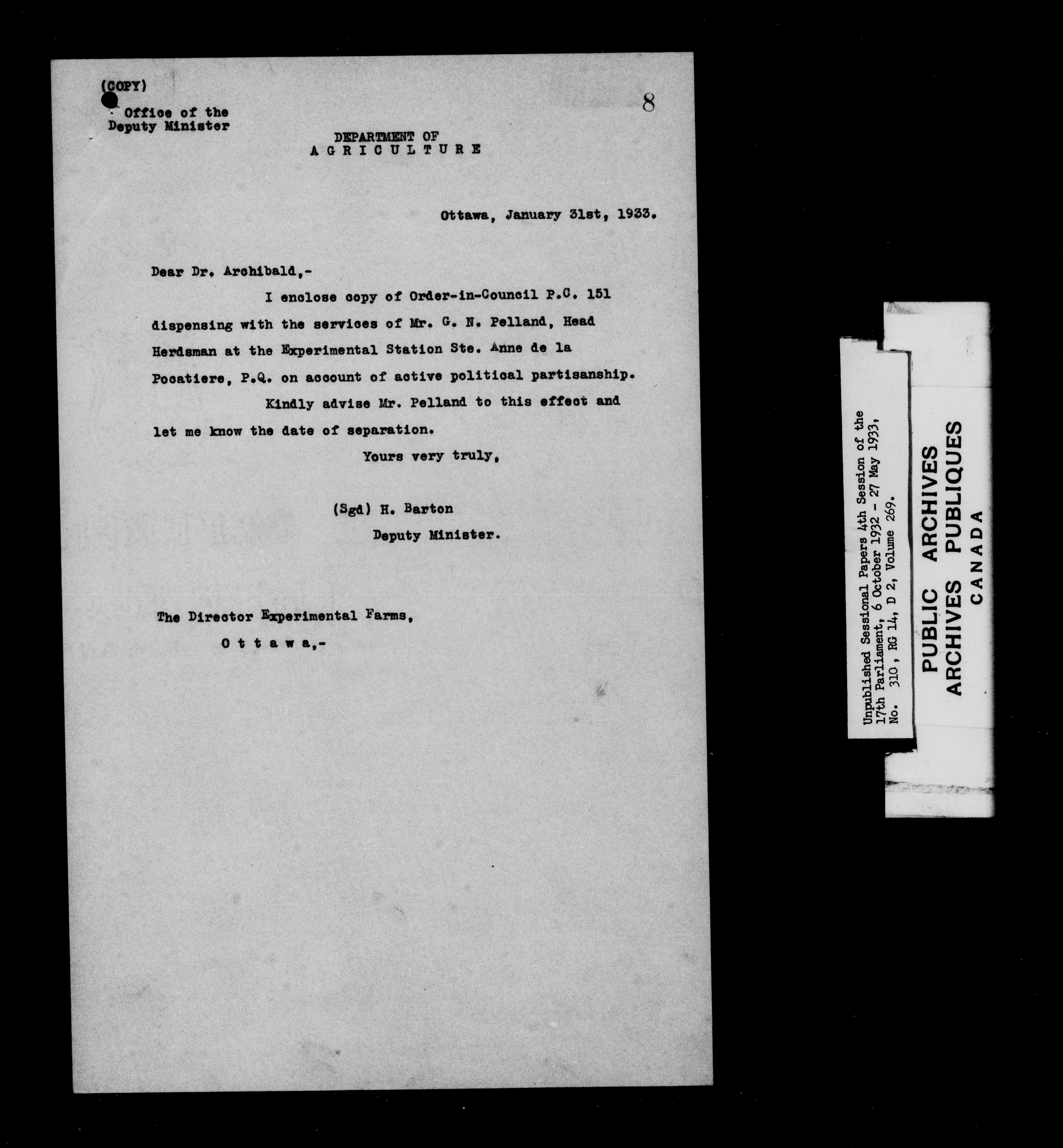 Unpublished sessional papers, 4th session of the 17th Parliament, 6 October 1932 - 27 May 1933 - 7600
