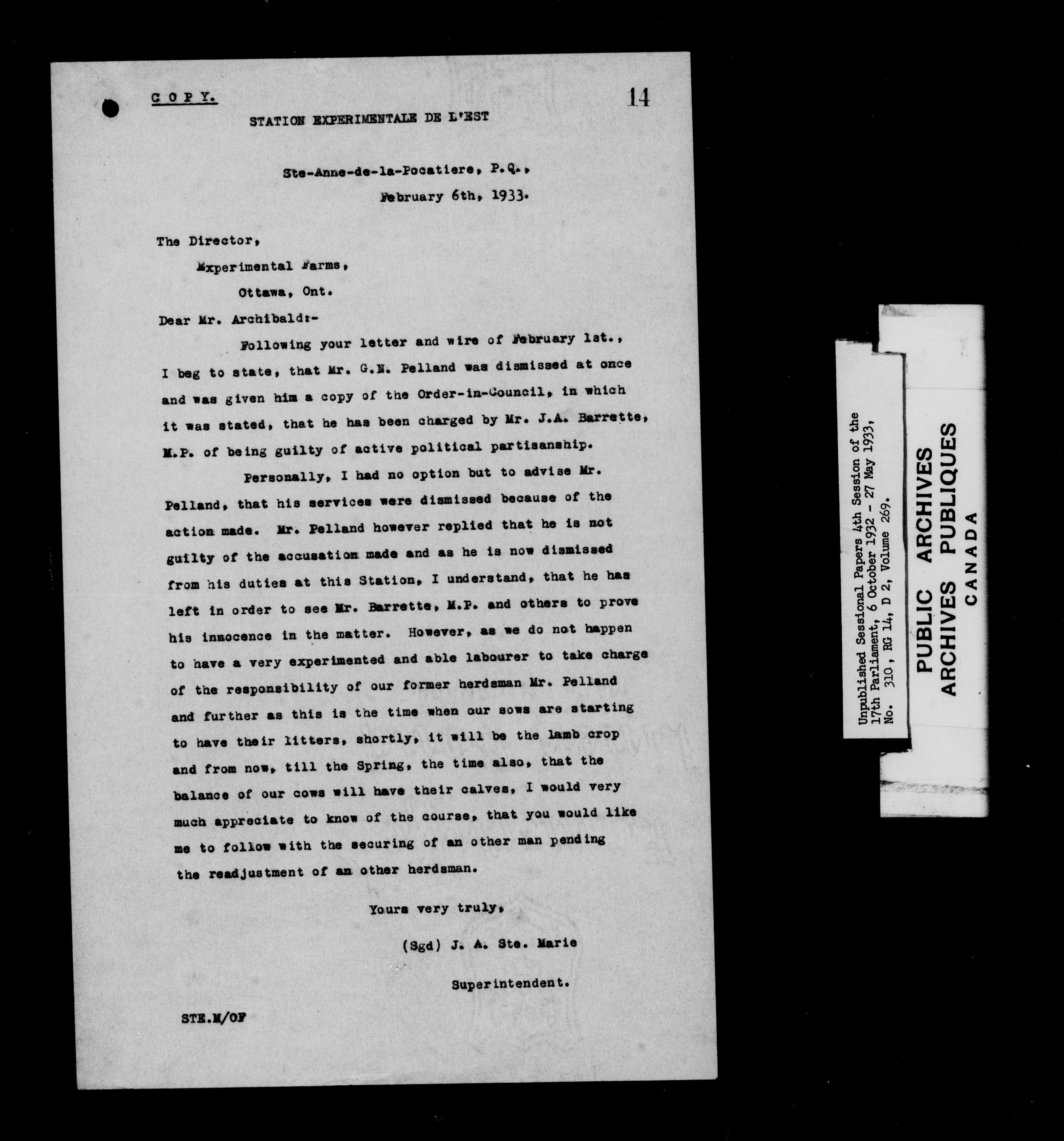 Unpublished sessional papers, 4th session of the 17th Parliament, 6 October 1932 - 27 May 1933 - 7600