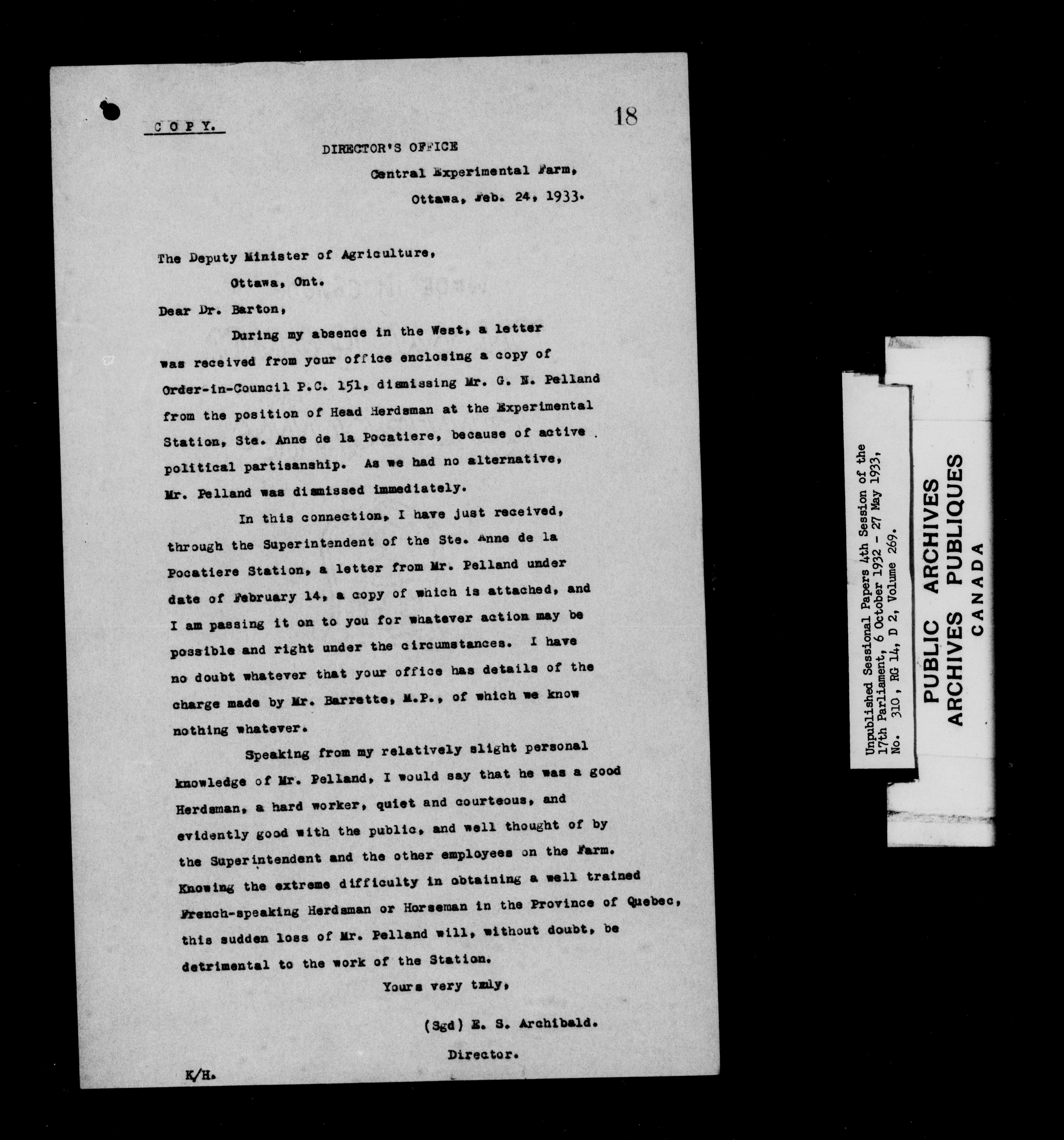Unpublished sessional papers, 4th session of the 17th Parliament, 6 October 1932 - 27 May 1933 - 7600
