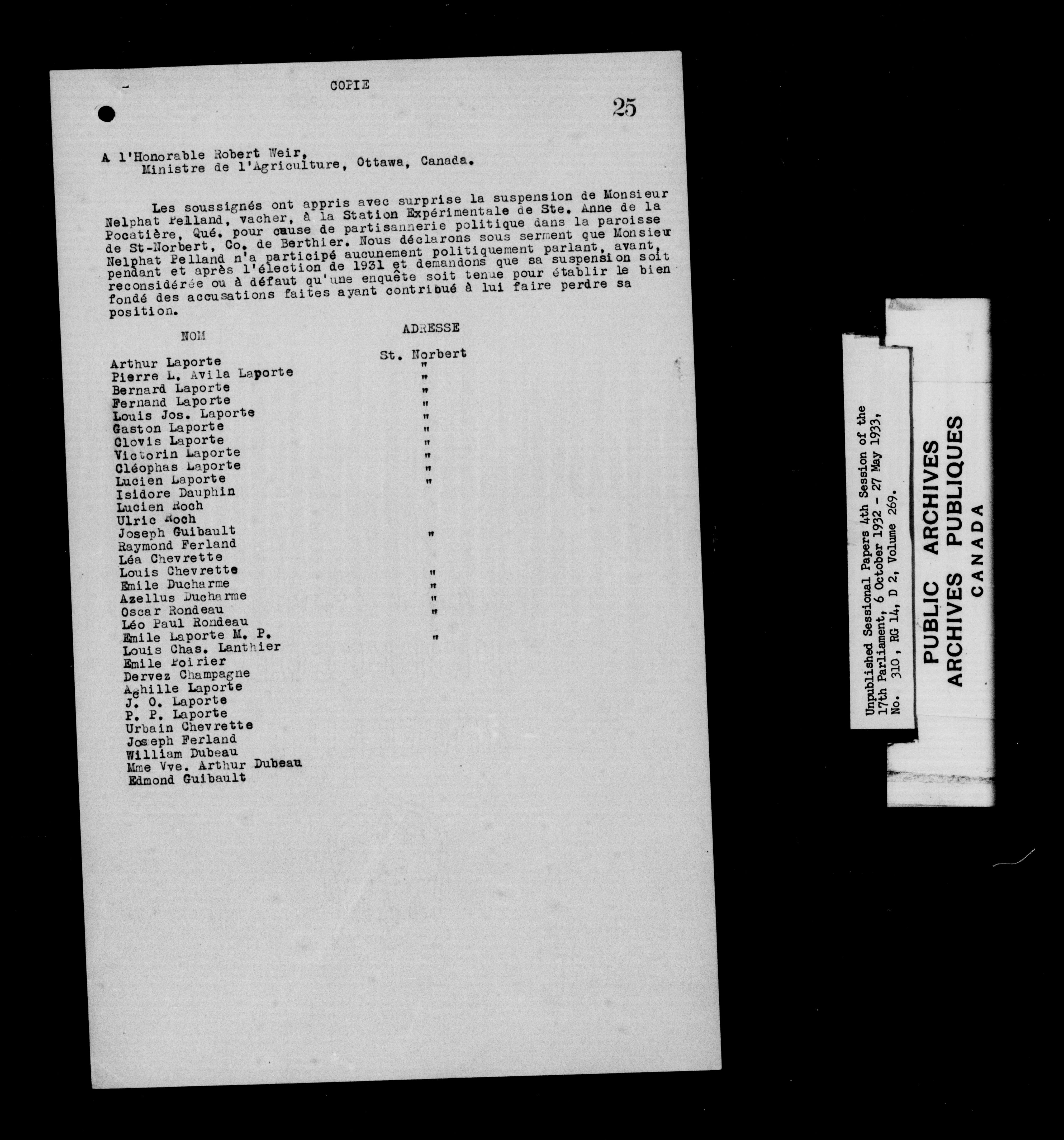 Unpublished sessional papers, 4th session of the 17th Parliament, 6 October 1932 - 27 May 1933 - 7600