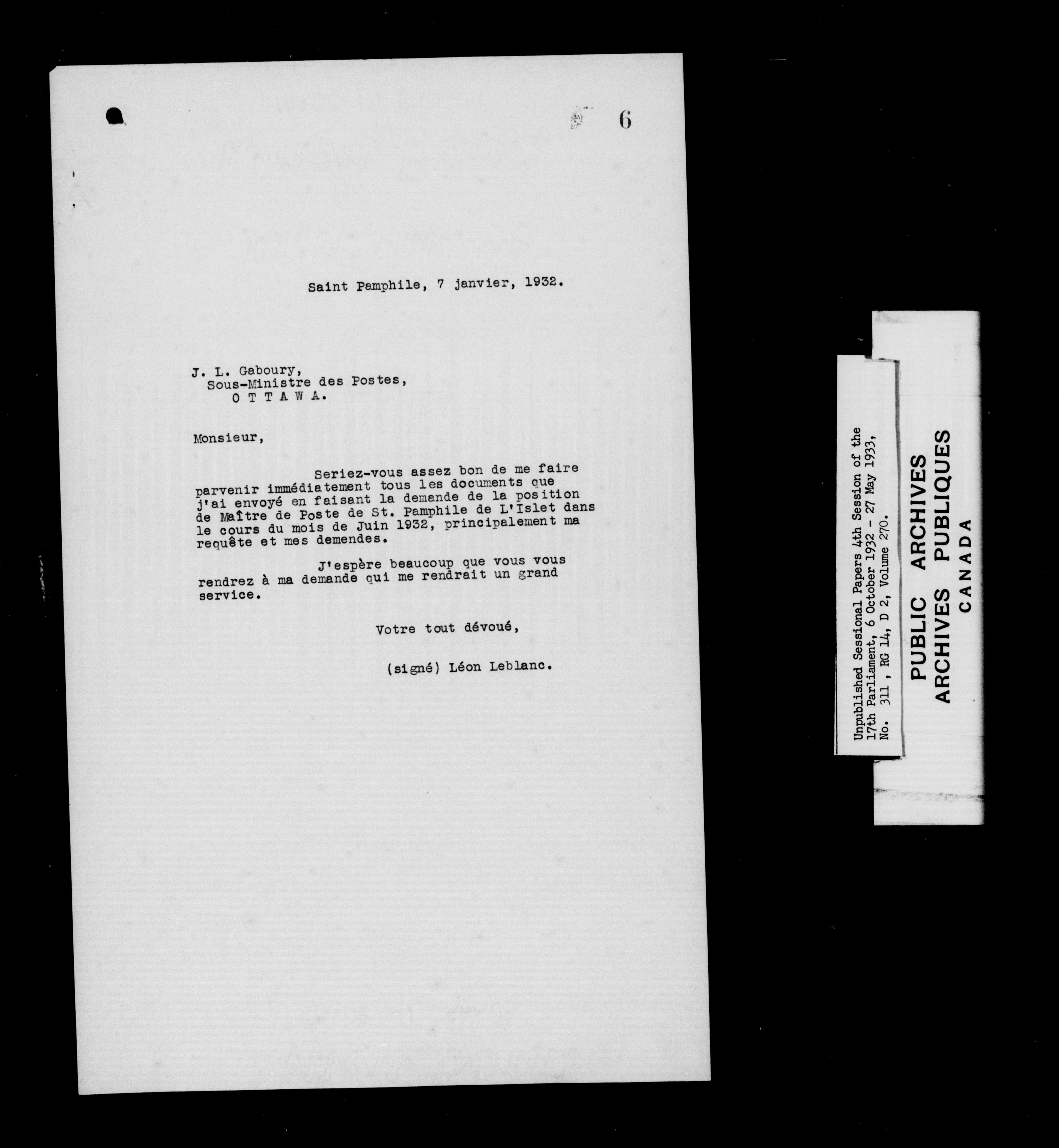 Unpublished sessional papers, 4th session of the 17th Parliament, 6 October 1932 - 27 May 1933 - 7600