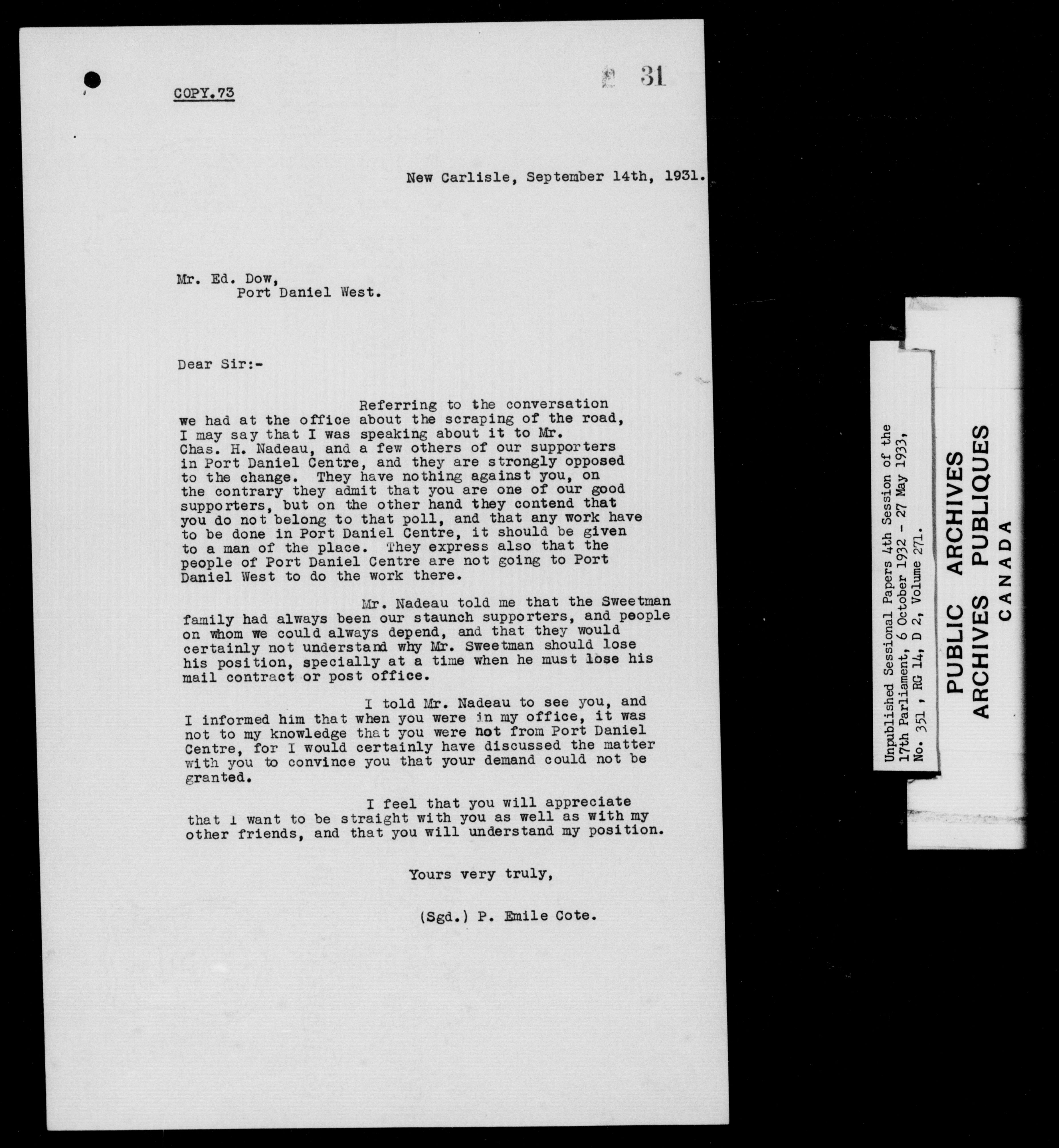 Unpublished sessional papers, 4th session of the 17th Parliament, 6 October 1932 - 27 May 1933 - 7601
