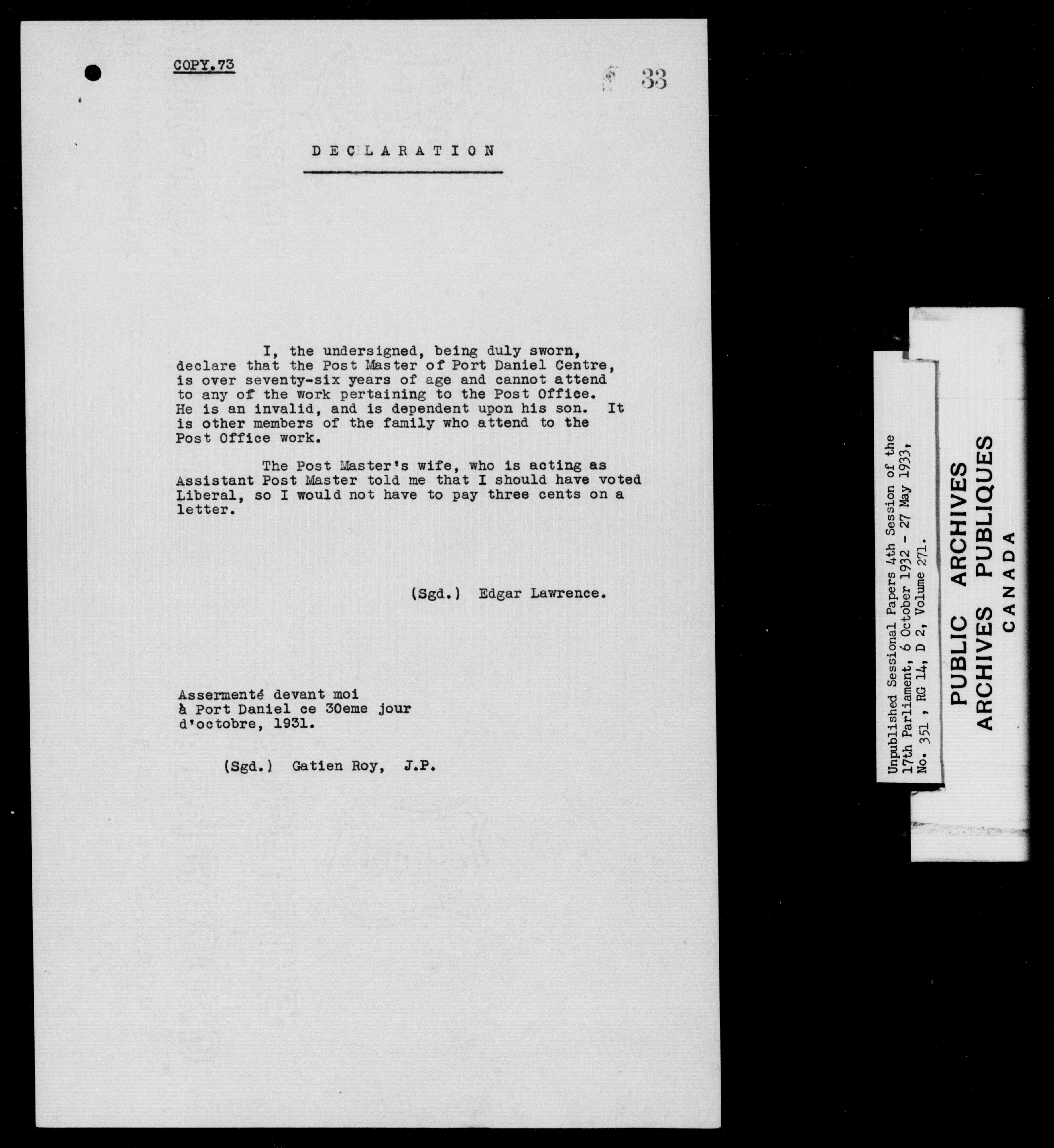 Unpublished sessional papers, 4th session of the 17th Parliament, 6 October 1932 - 27 May 1933 - 7601