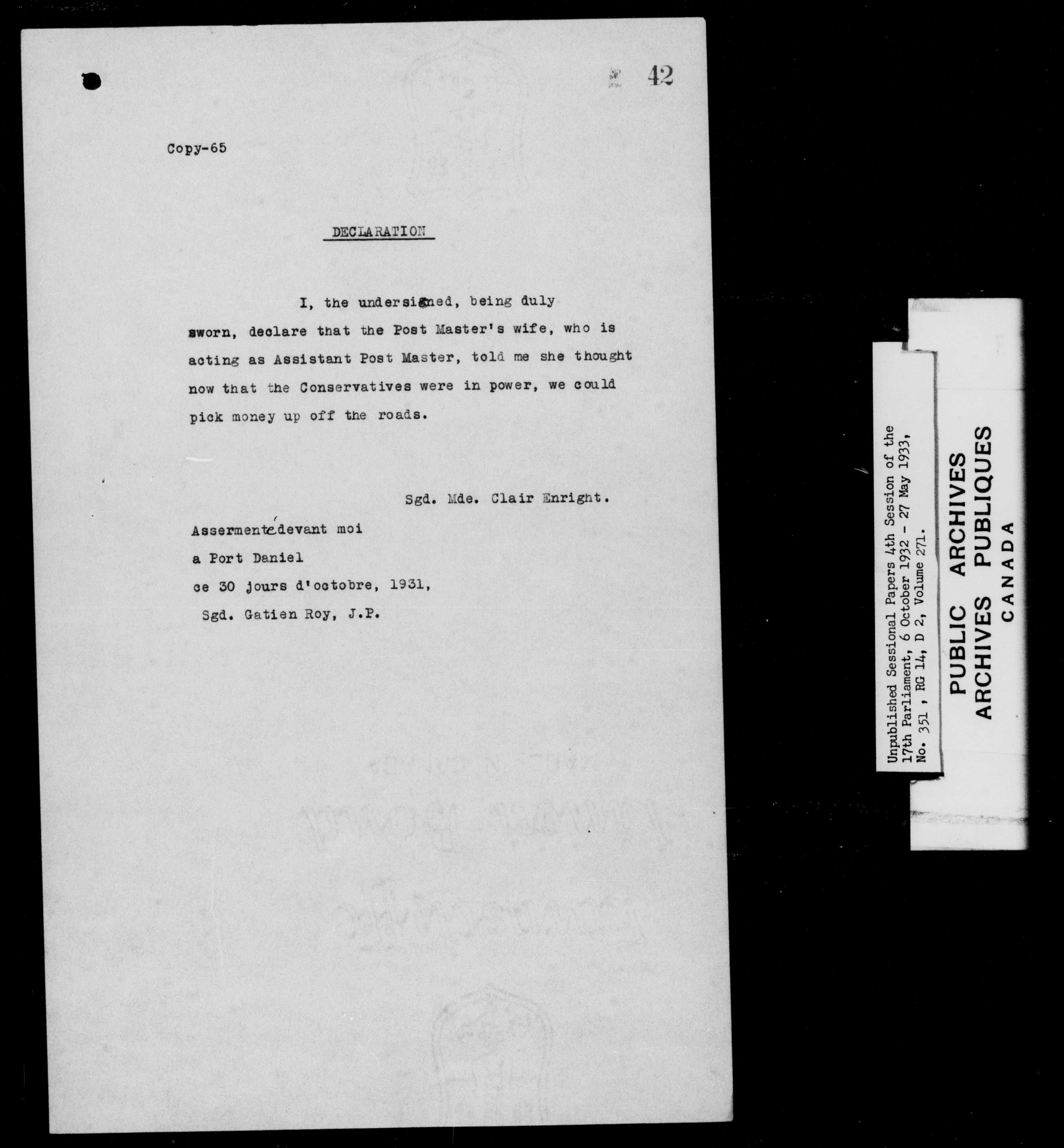 Unpublished sessional papers, 4th session of the 17th Parliament, 6 October 1932 - 27 May 1933 - 7601