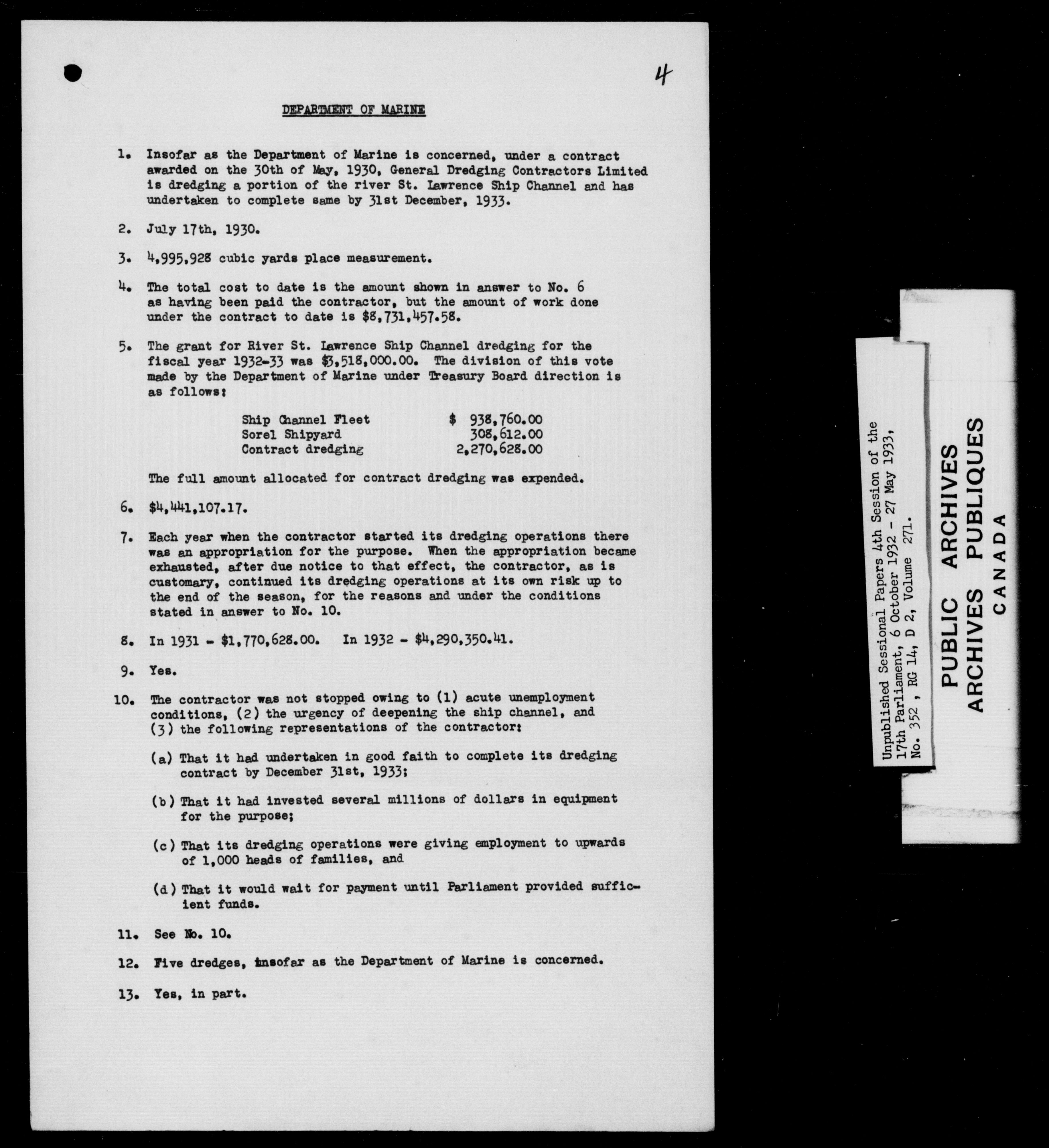 Unpublished sessional papers, 4th session of the 17th Parliament, 6 October 1932 - 27 May 1933 - 7601