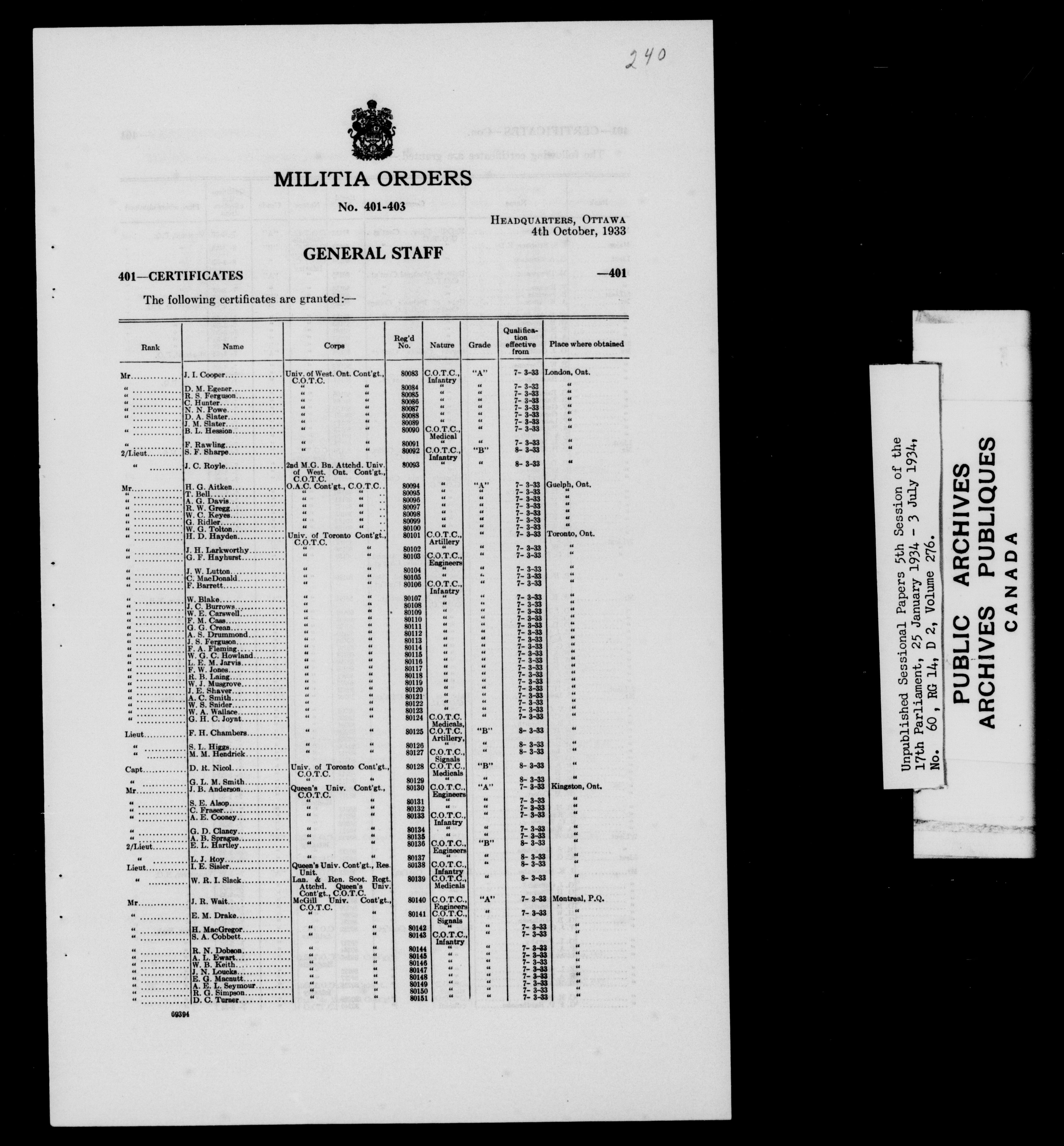 Unpublished sessional papers, 4th session of the 17th Parliament, 6 October 1932 - 27 May 1933 - 7602