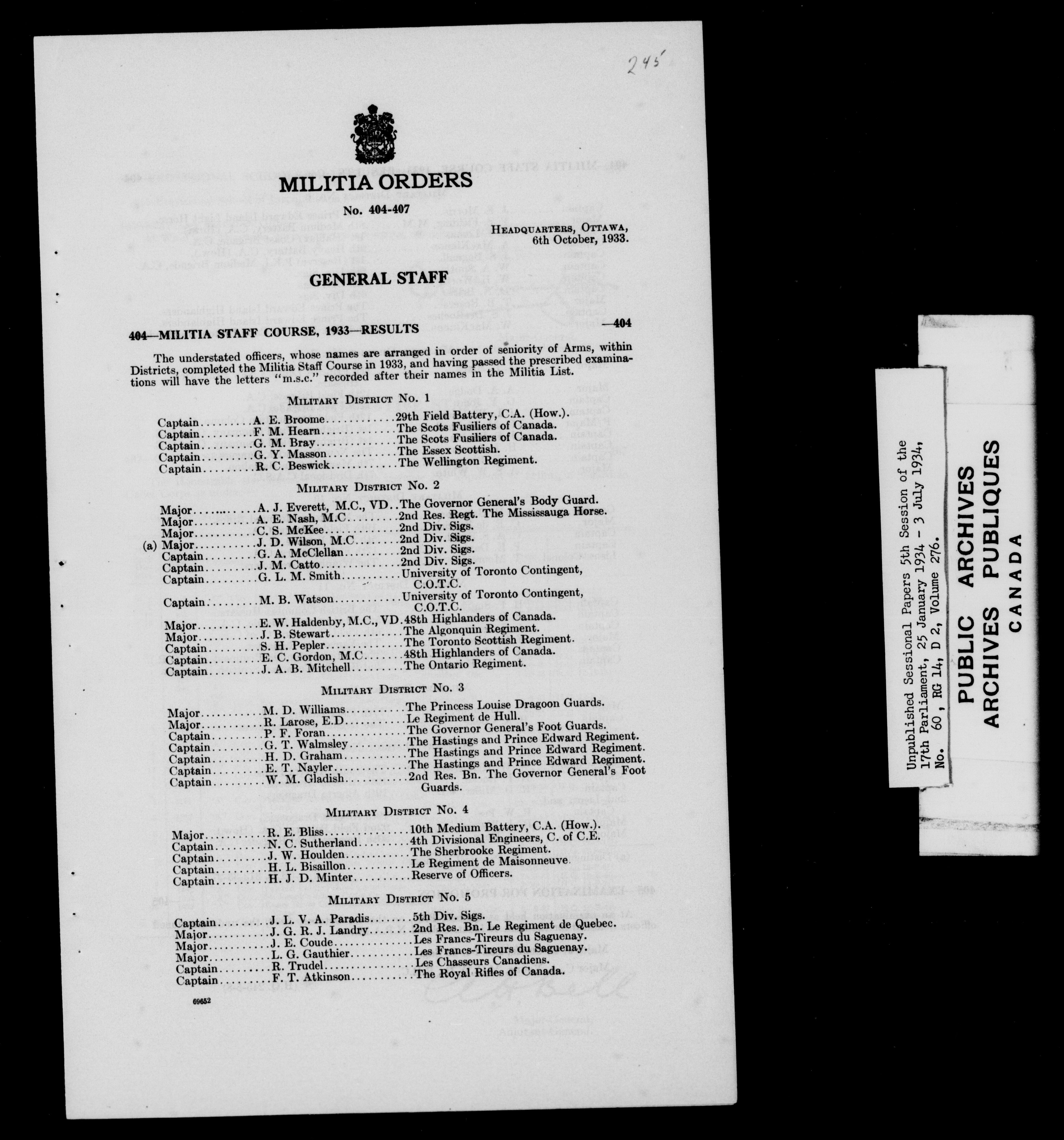 Unpublished sessional papers, 4th session of the 17th Parliament, 6 October 1932 - 27 May 1933 - 7602