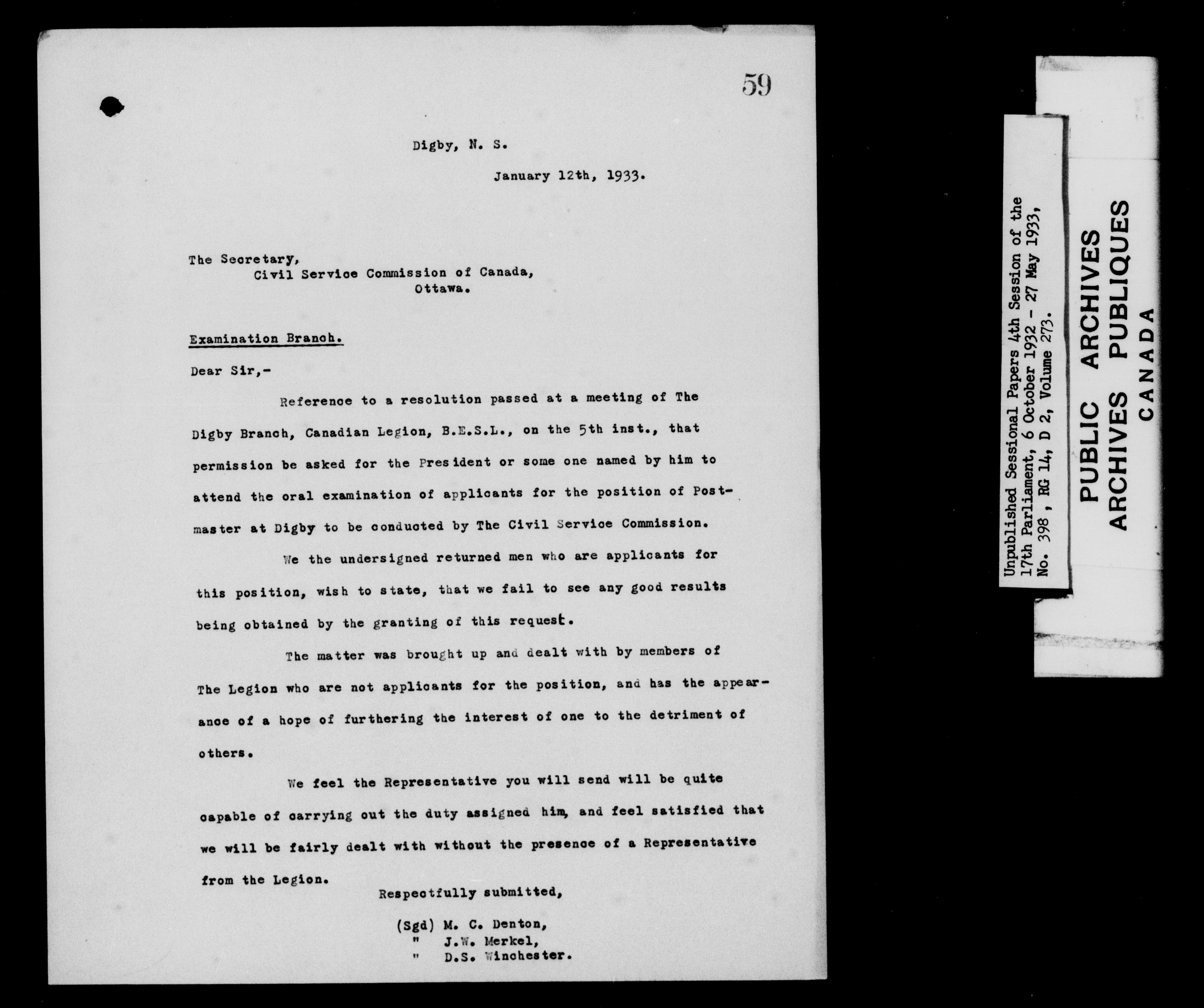 Unpublished sessional papers, 4th session of the 17th Parliament, 6 October 1932 - 27 May 1933 - 7602