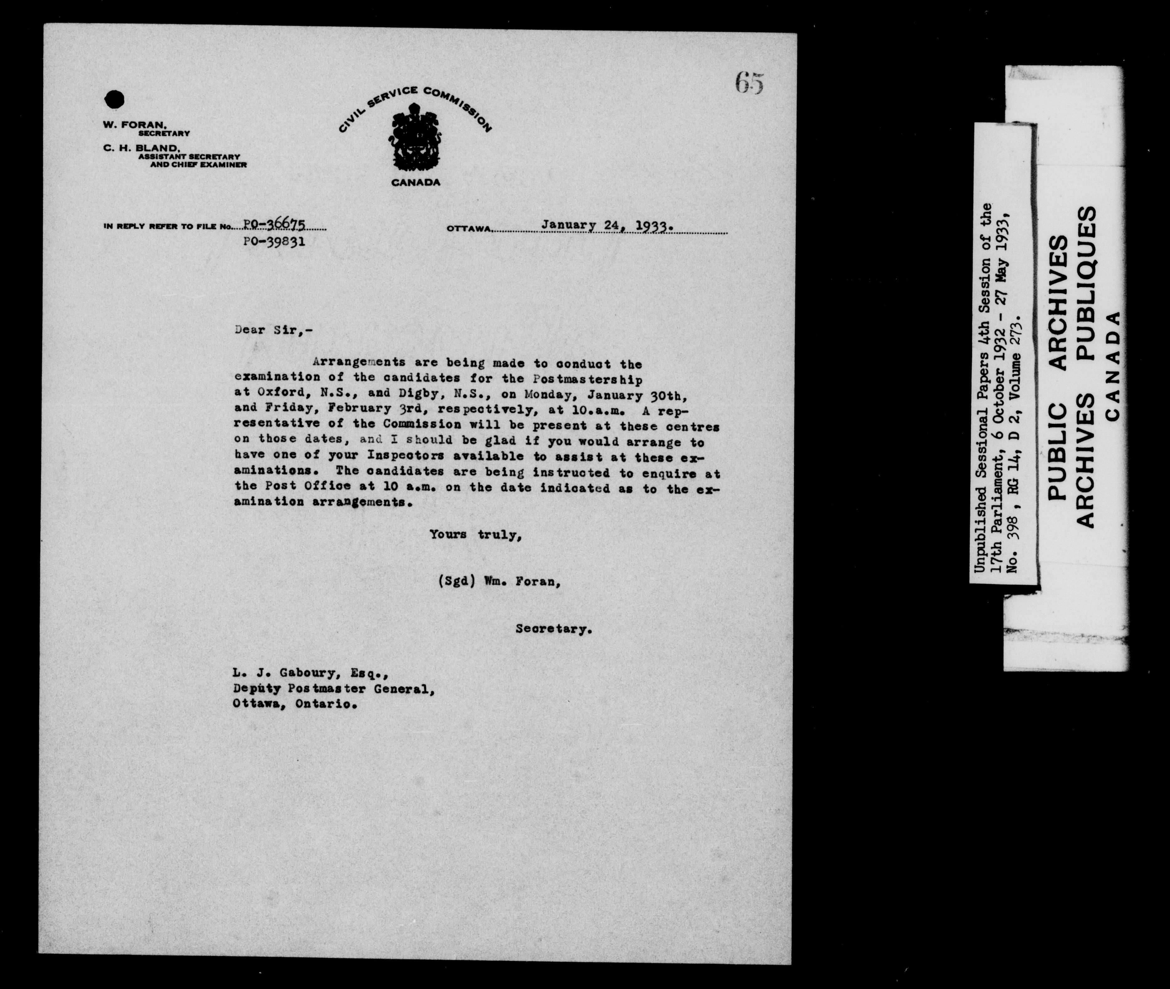 Unpublished sessional papers, 4th session of the 17th Parliament, 6 October 1932 - 27 May 1933 - 7602