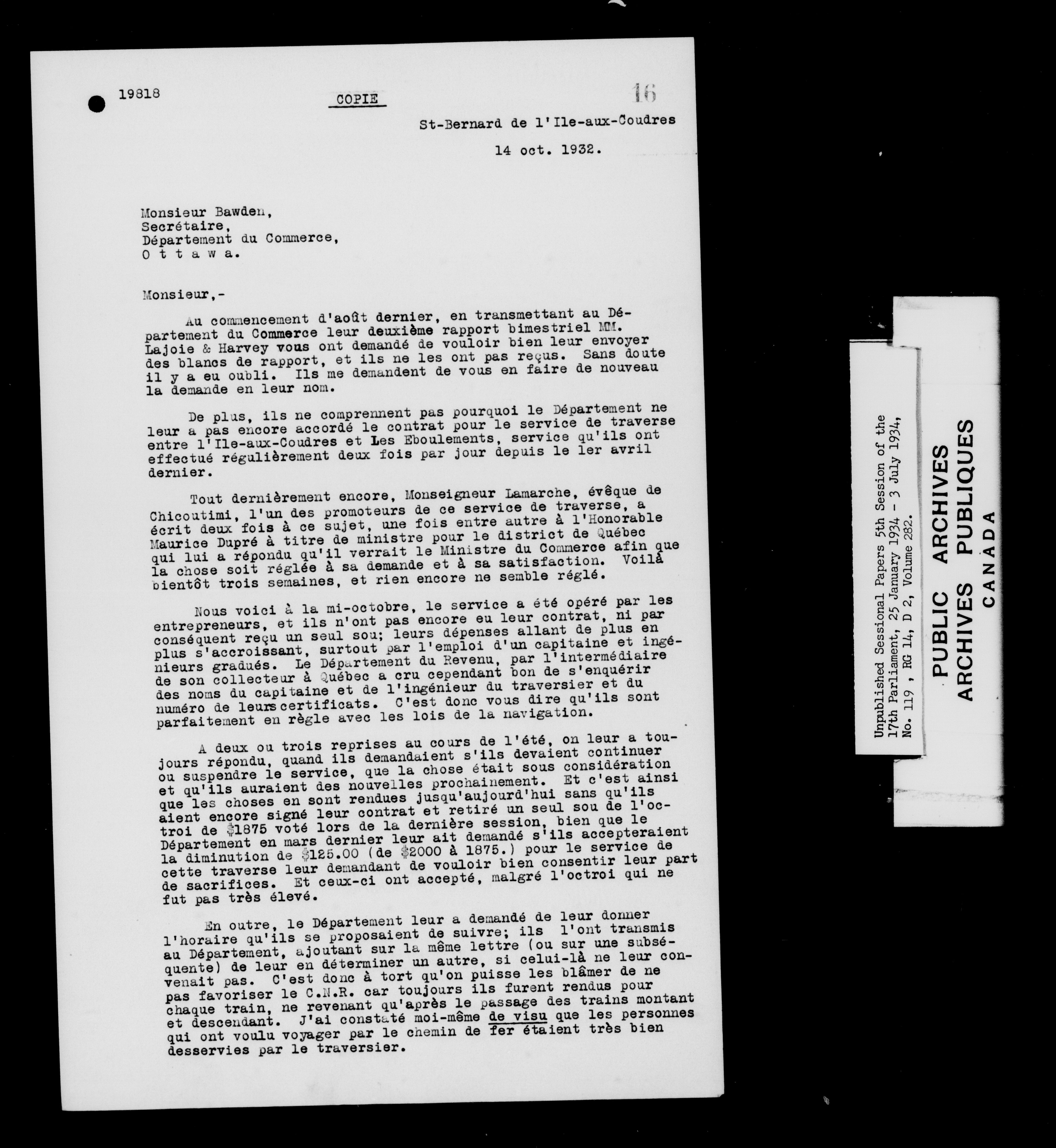 Unpublished sessional papers, 5th session of the 17th Parliament, 25 January - 3 July 1934 - 7606