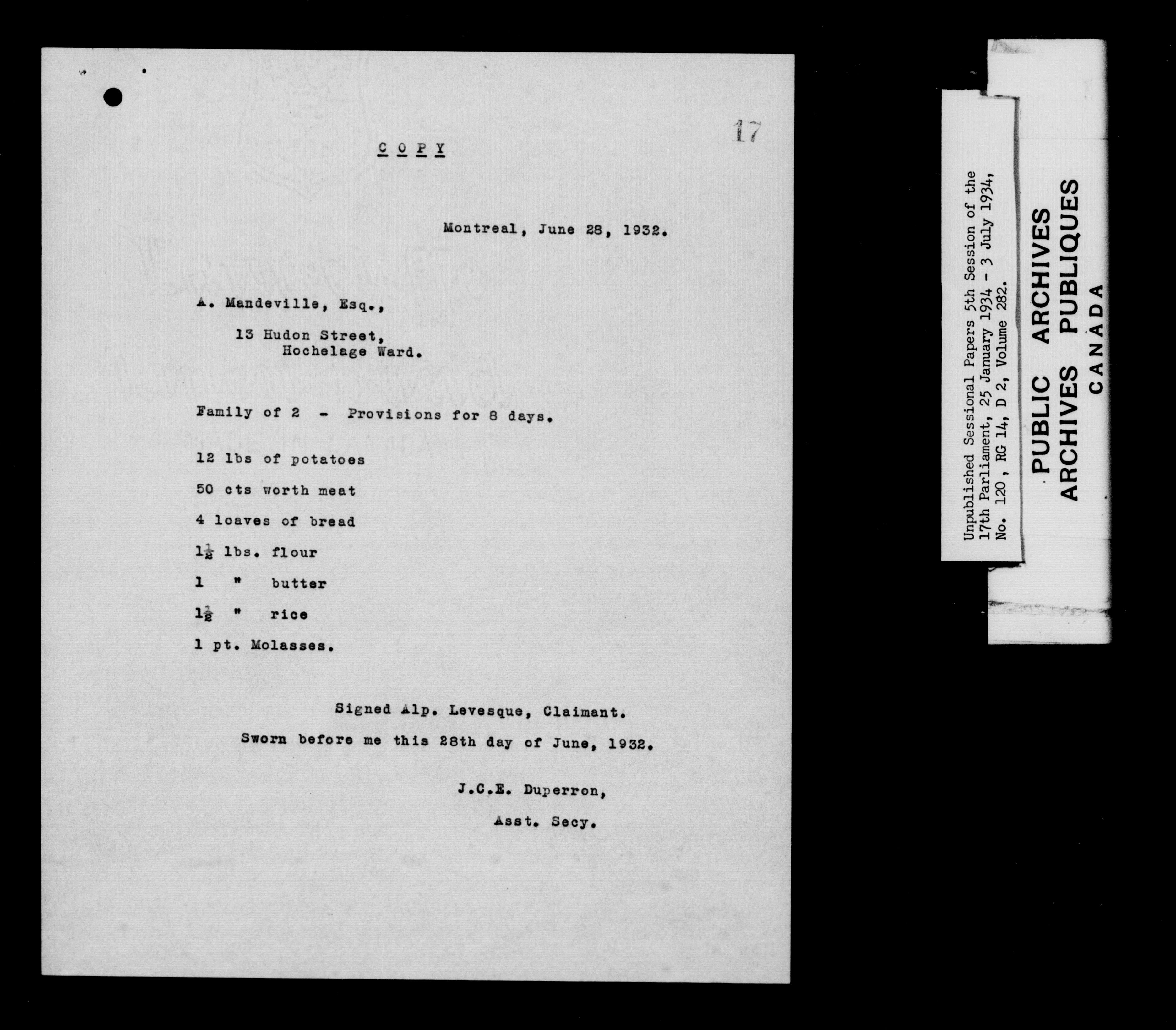 Unpublished sessional papers, 5th session of the 17th Parliament, 25 January - 3 July 1934 - 7606
